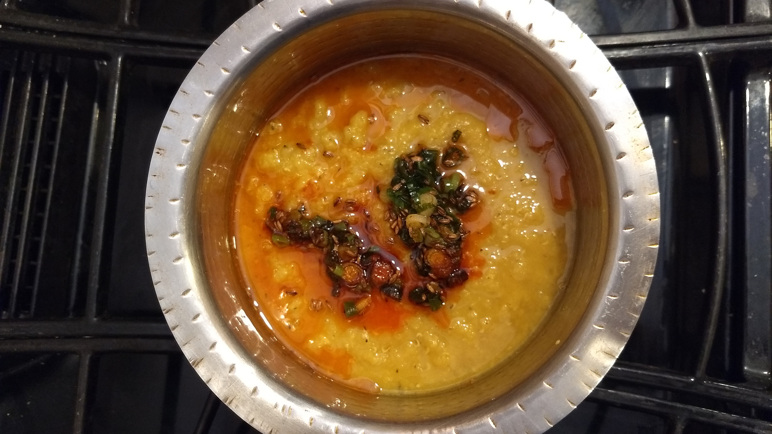 Step 2: Finishing the Masoor Dal with Cumin and Scallions