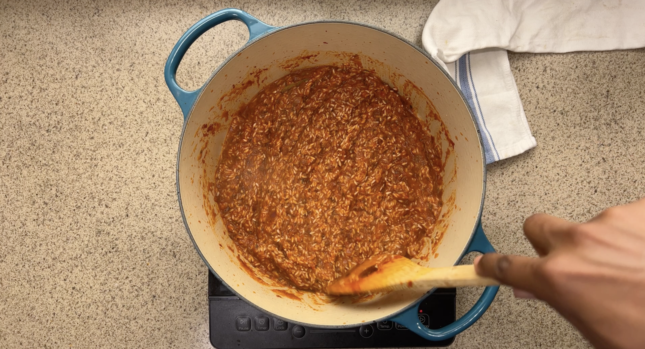 Step 3, optional: To infuse a bit of smokiness in the rice, after it is cooked, increase the heat to high with the lid on for an additional 2-3 minutes, to develop a crust. Turn the heat off and allow the rice to rest until it is ready to be served.