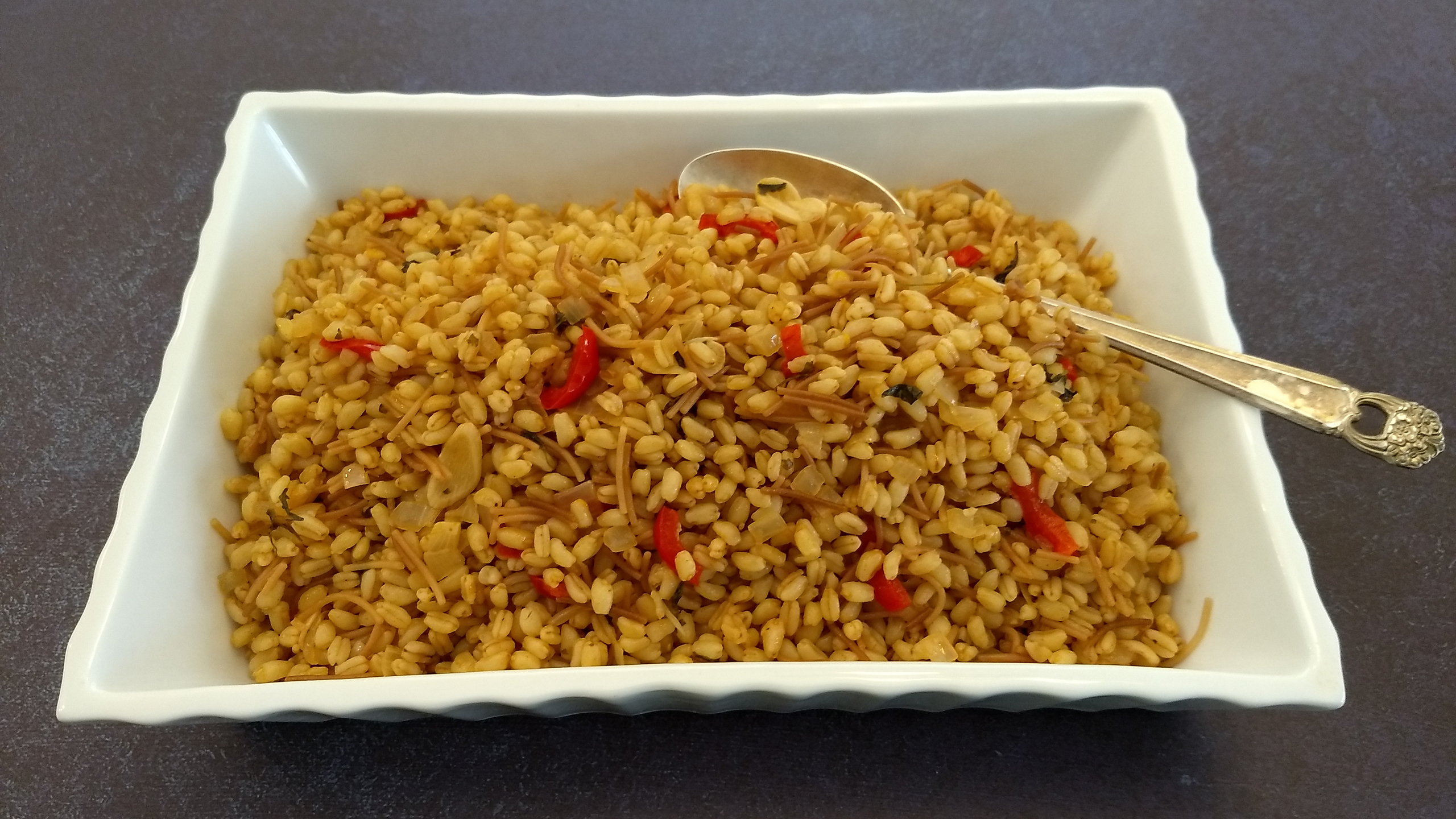 Reduce the heat to maintain a simmer and cook, stirring and scraping the bottom of the pot occasionally to prevent the spices from scorching, until the farro is tender and the water is absorbed, about 20 minutes.