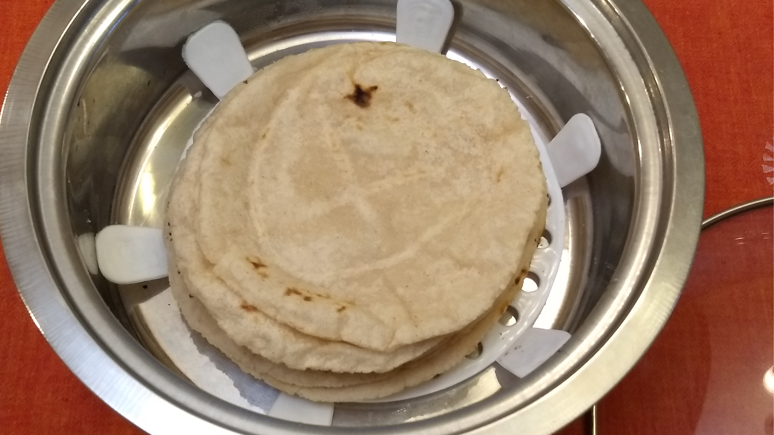 Keep the tortillas stacked and wrapped in a clean towel or place them in an insulated container to keep them warm.