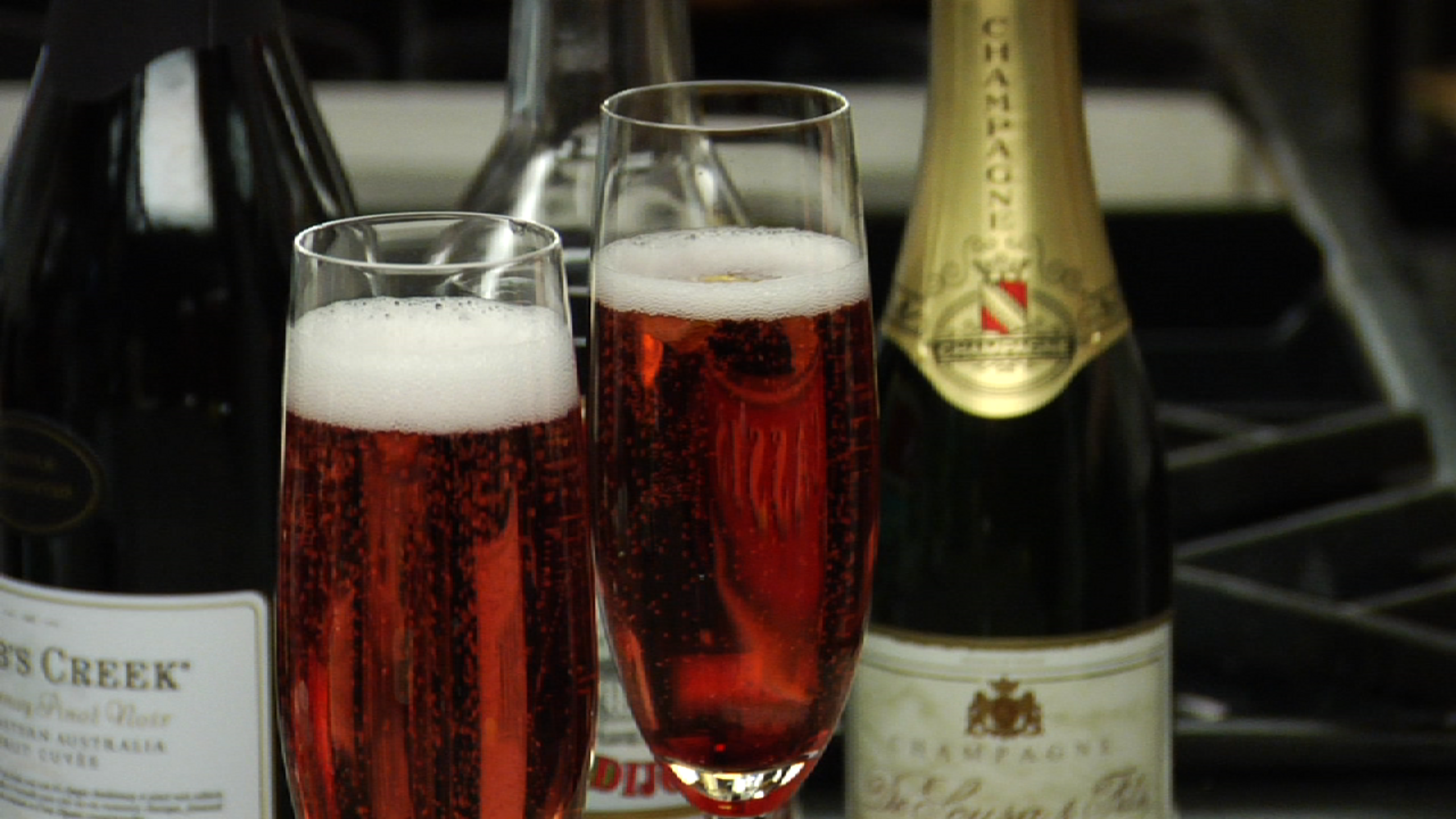 A Kir Royale is simple to make. Just mix about 1 part crème de cassis and 5 parts champagne or sparkling wine into a glass flute.