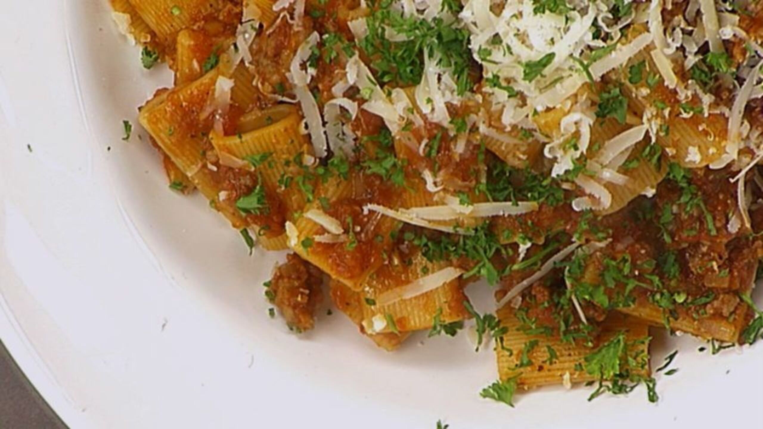 You can use any pasta noodle for this dish but the rigatoni noodles stand up particularly well against this hearty and scrumptious meat sauce.