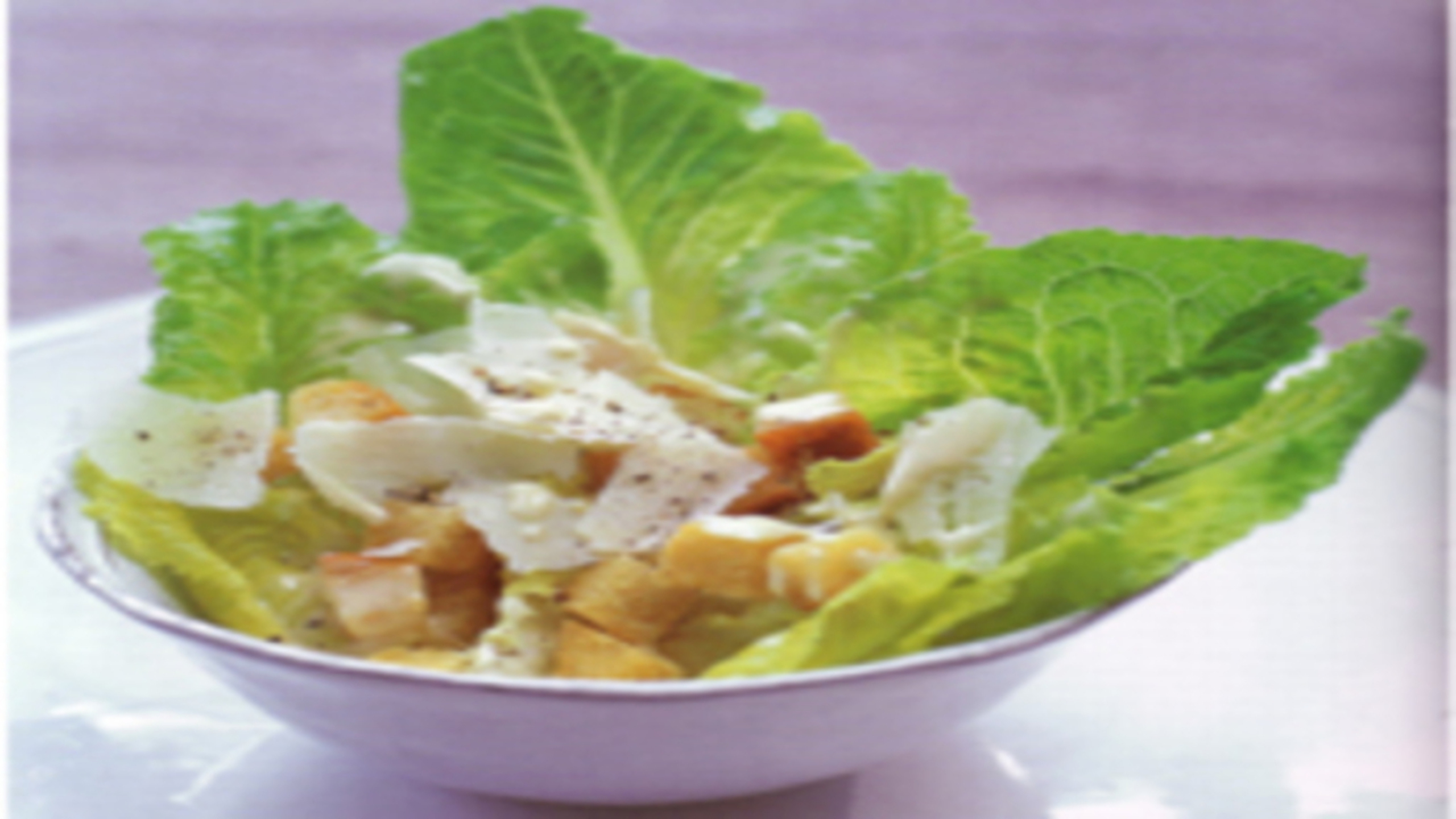 Separate the romaine leaves. Use only the crispy inner leaves. Wash and dry them, then tear into fairly large pieces. Place in a large bowl and toss with dressing. Scatter croutons over and sprinkle the shaved parmigiano reggiano.