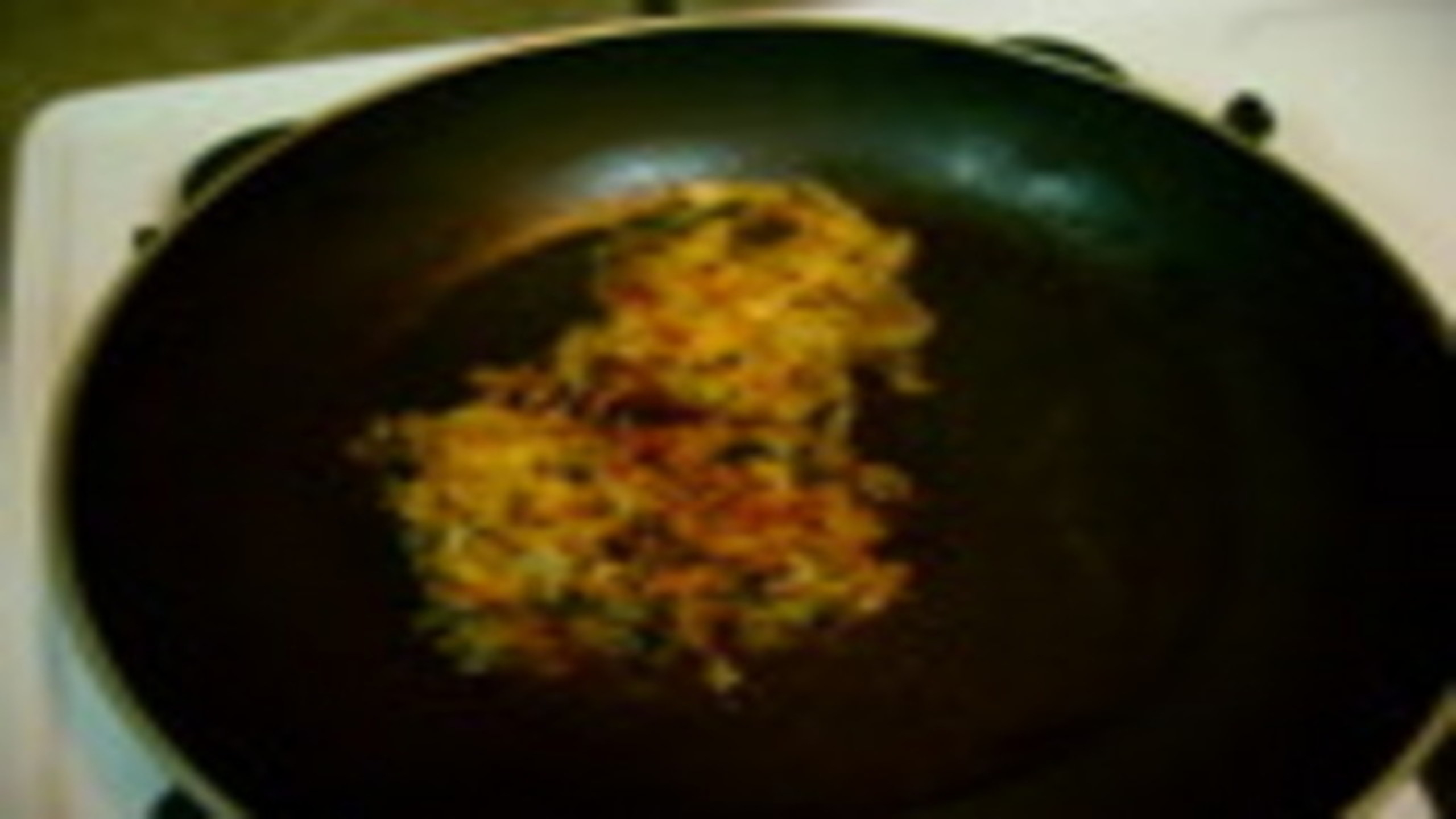 Heat 1/2 T of oil in a pan over medium heat. Saute the asparagus until crisp-tender. Transfer to a plate.