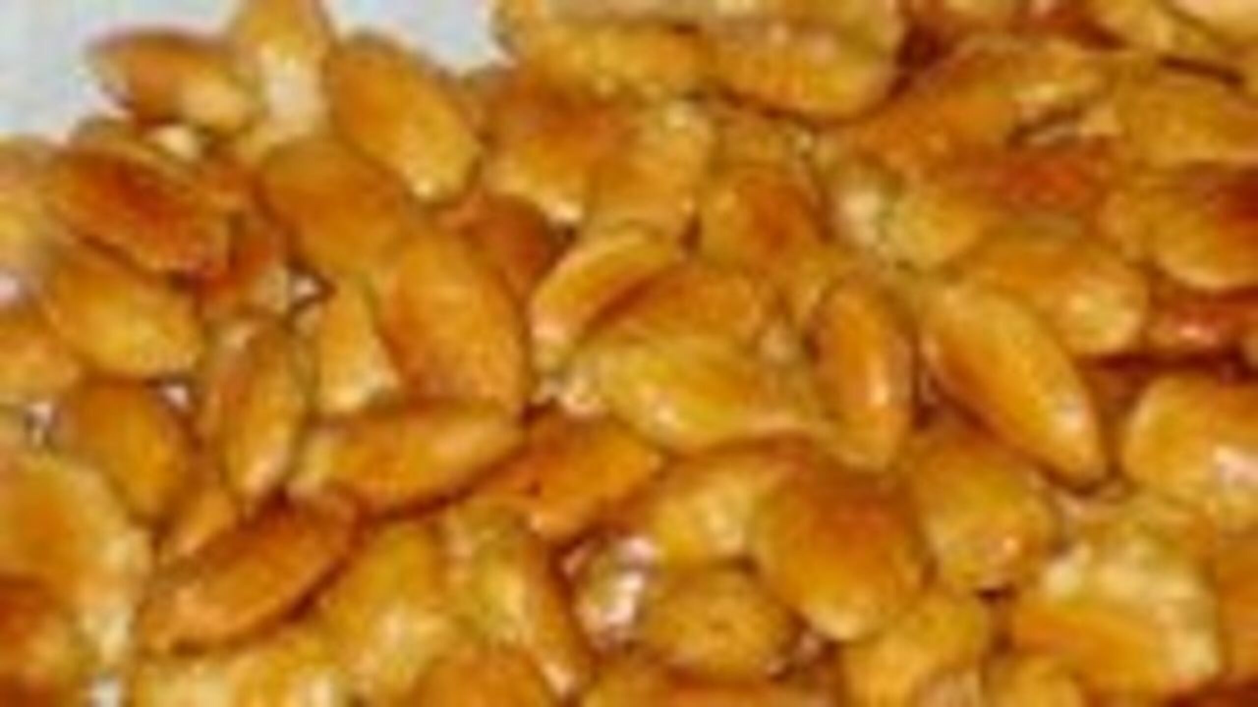 Set up a silpat or sheet of parchment paper, along with a bit of vegetable oil and two forks. Place the nuts onto a baking sheet and into the oven – just enough to take any chill out of them. Do not toast.