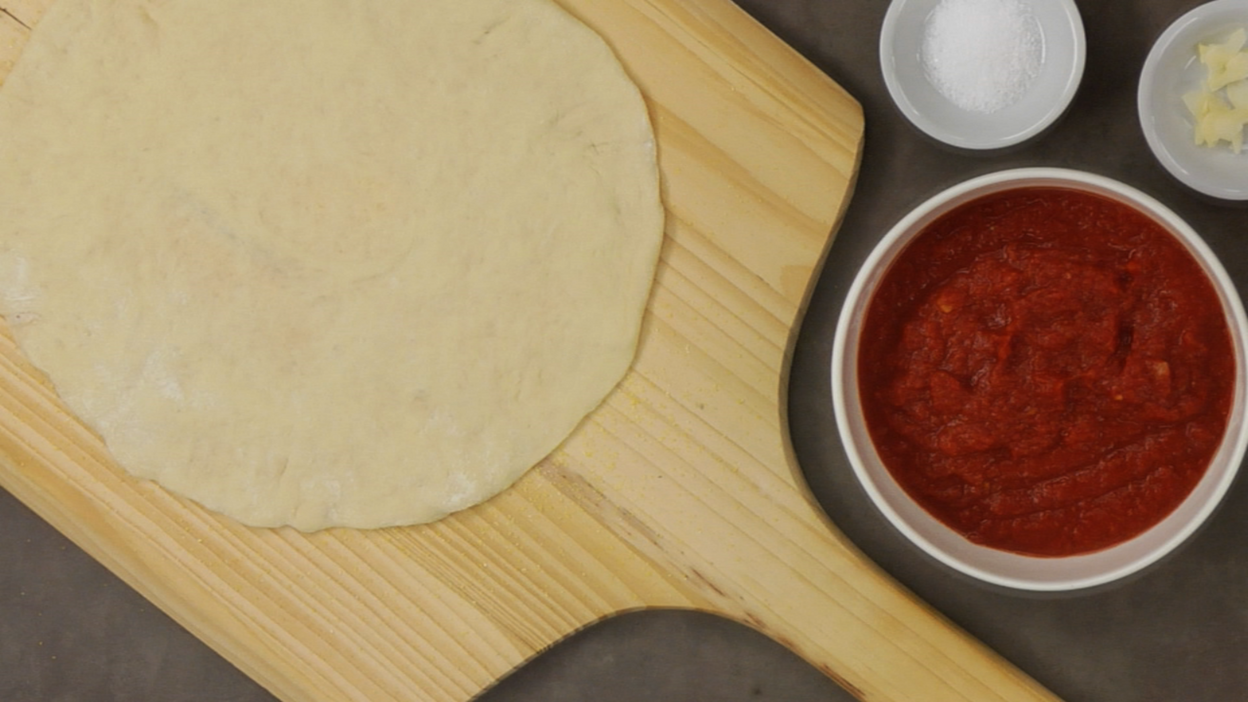 Remove the dough from the refrigerator about 2 hours prior to making pizza so the dough can come to room temperature. Once you take the dough out of the refrigerator, punch it down, portion and shape it into rounds as described above. Cover and let the dough rest until it comes to room temperature.
