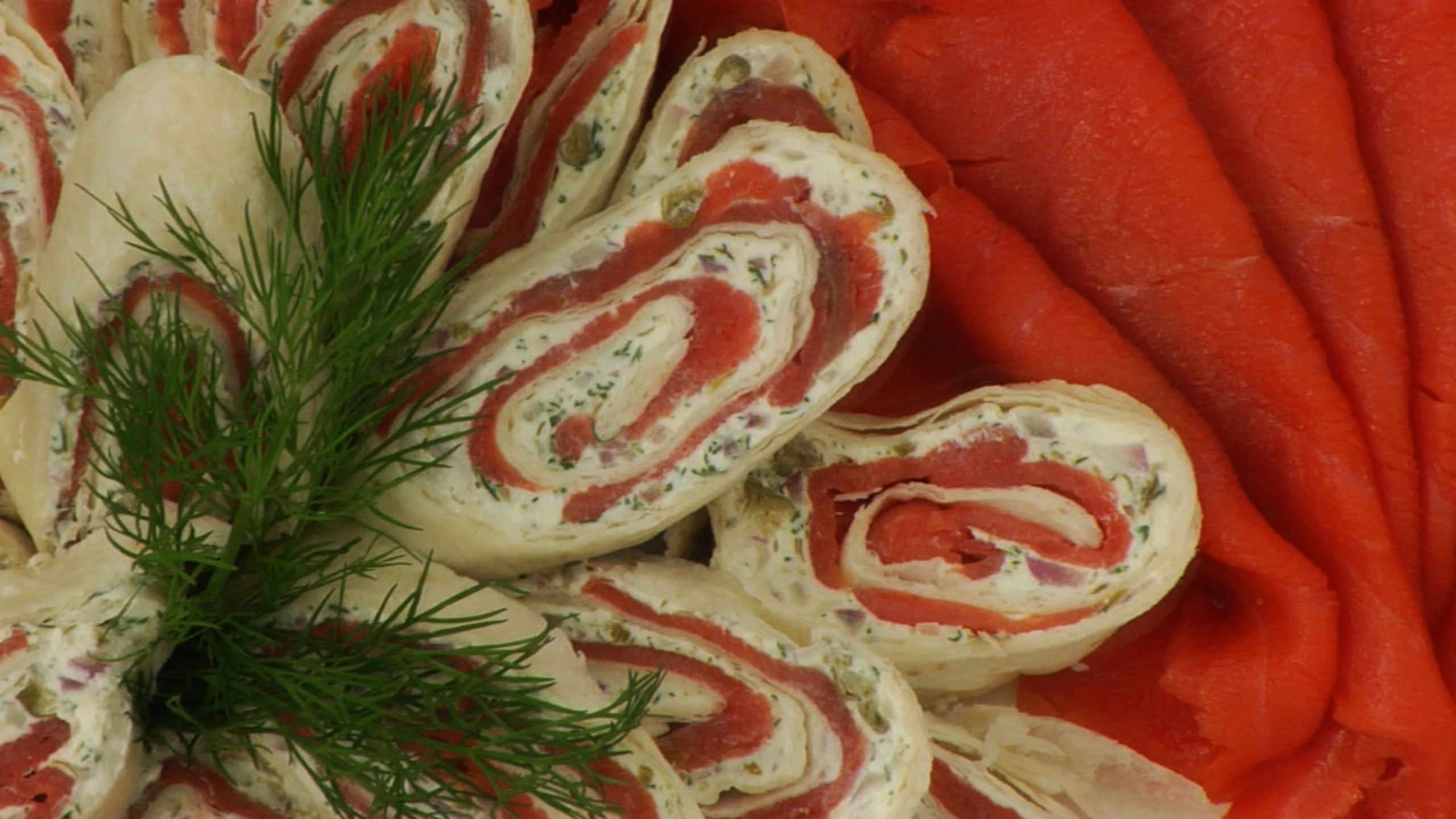 To make the salmon rolls, finely dice the red onion. Finley chop the fresh dill and capers together. Mix the capers, dill, cream cheese and red onion together; set aside.