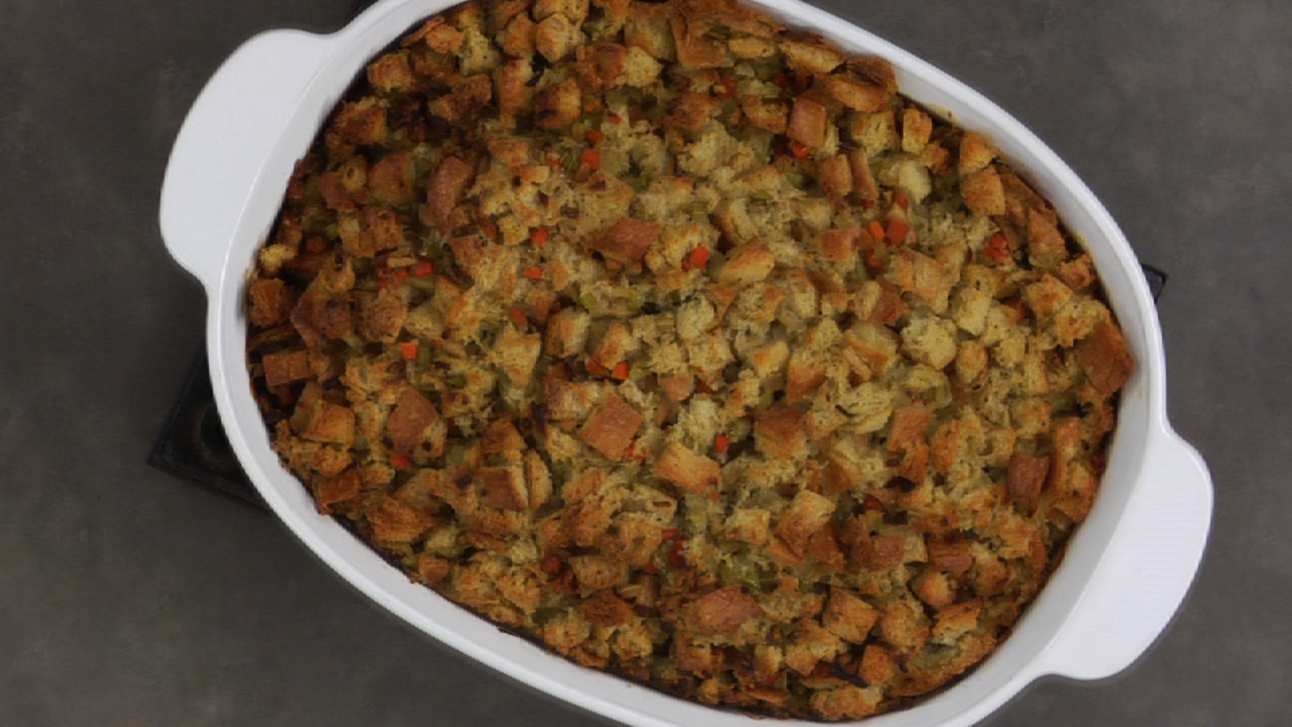 Once the stuffing is golden brown, remove from the oven and let cool slightly before serving.