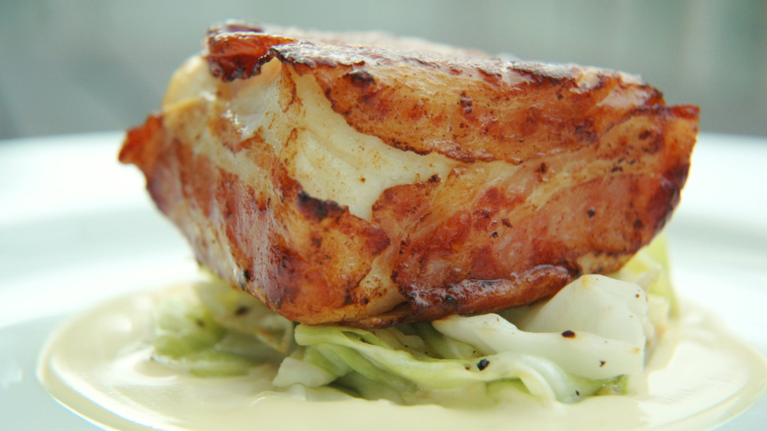 The pancetta not only adds great flavor to this dish, it also helps to keep the halibut nice and moist.