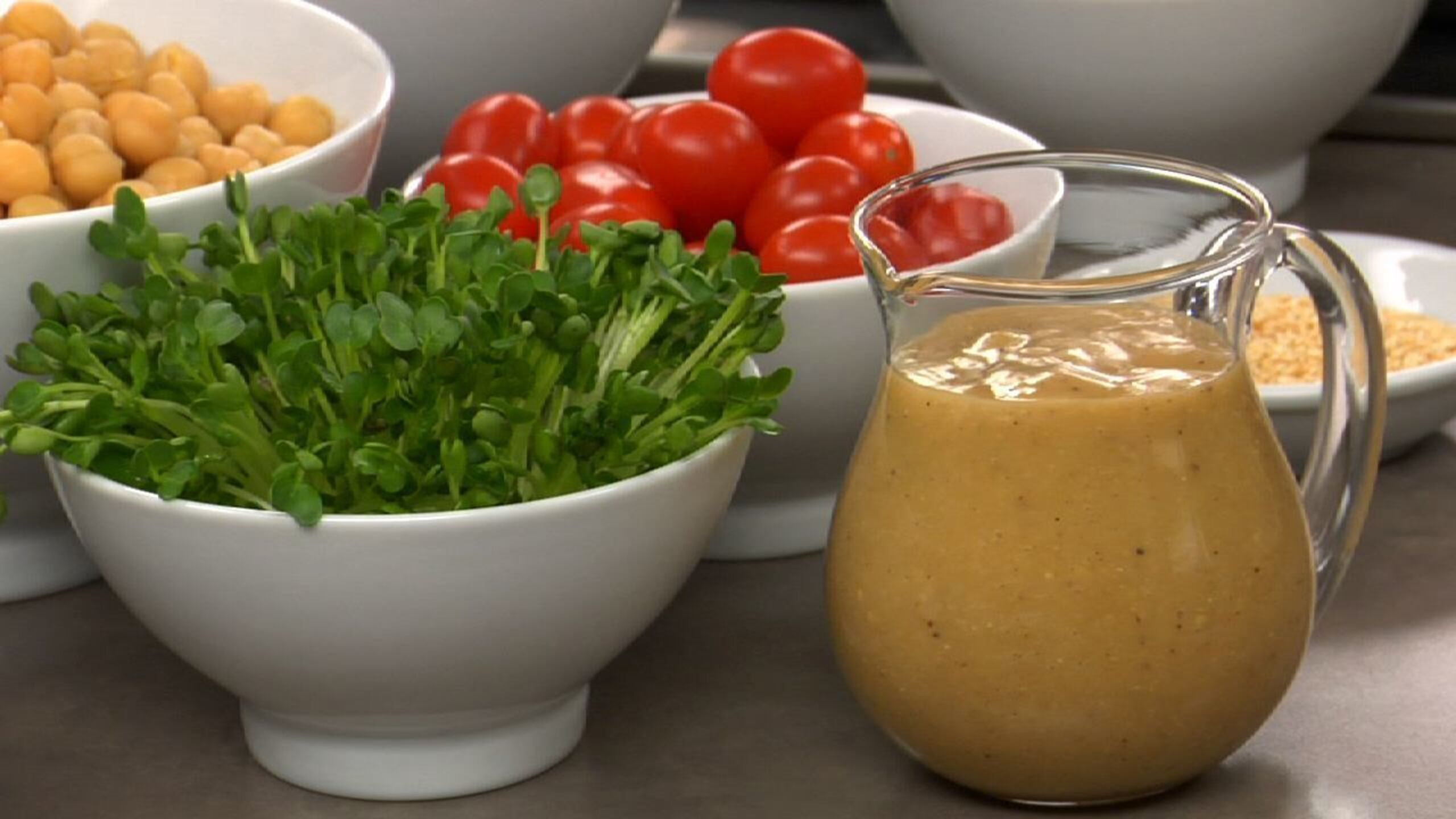 This dressing is great served with an array of shredded raw vegetables such as beets, sprouts, tomatoes, nuts, garbanzo beans, daikon and even feta cheese. Make your own salad bar!