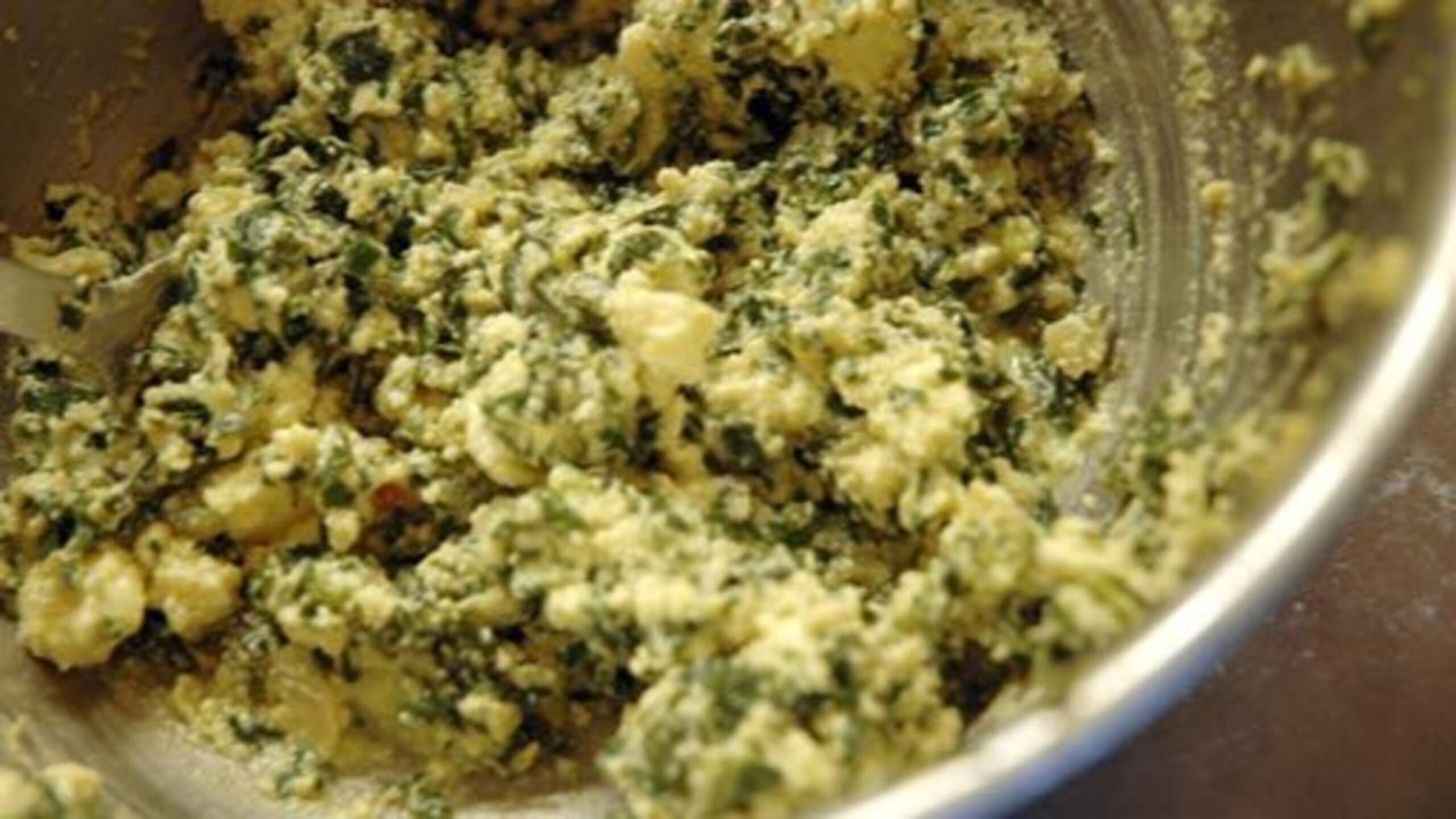 (2) See Step 1 “”/recipes/1130">Preparing the Spinach" from Mario Batali’s Basic Pasta Dough for blanching instructions.