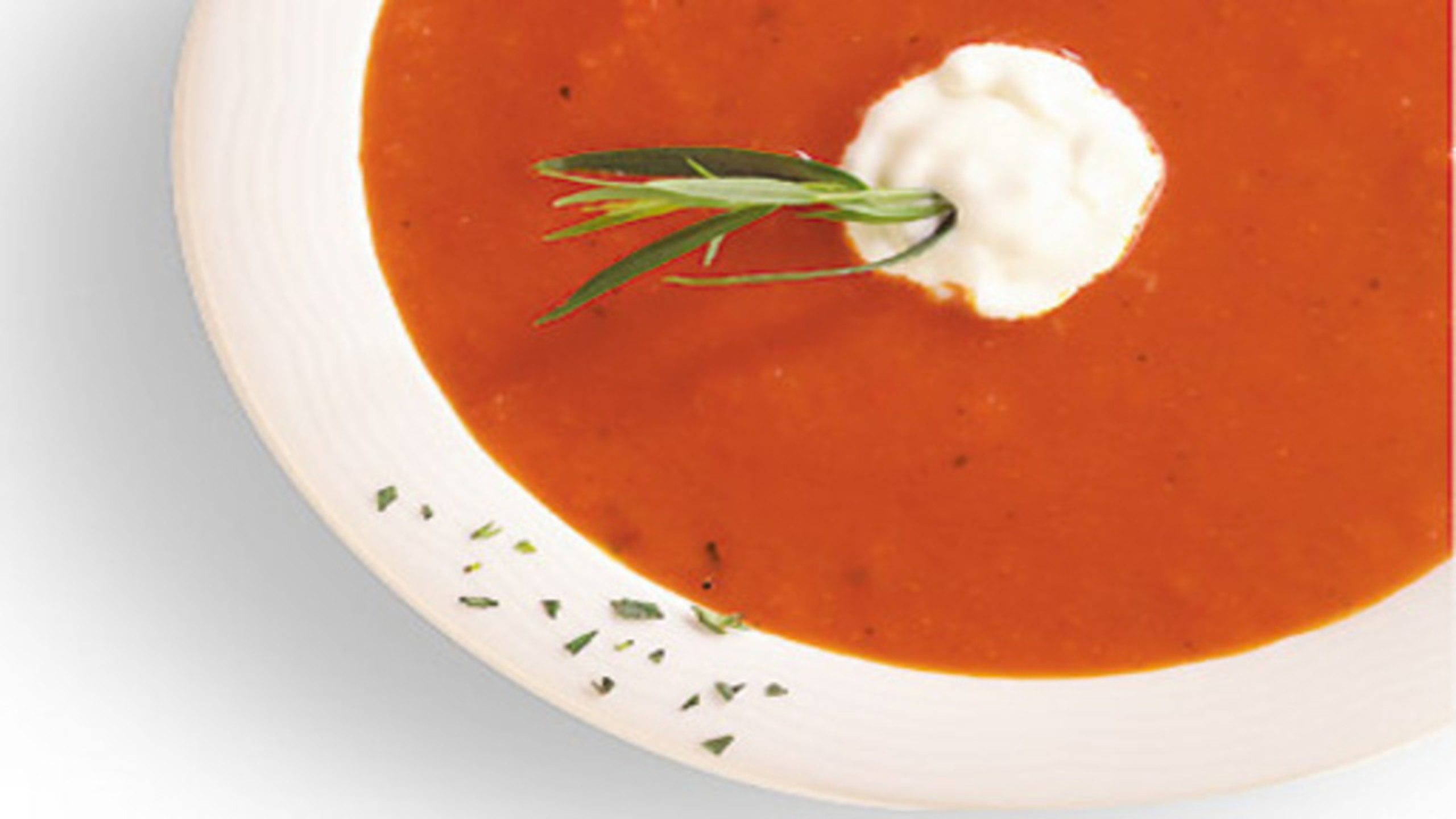 Entirely optional but a nice visual and taste addition is to add a dollop of sour cream or crème fraîche to the centre of the bowl along with a few grinds of black pepper. Great with a slice of baguette on the side when served as a starter or with your favourite sandwich for lunch.