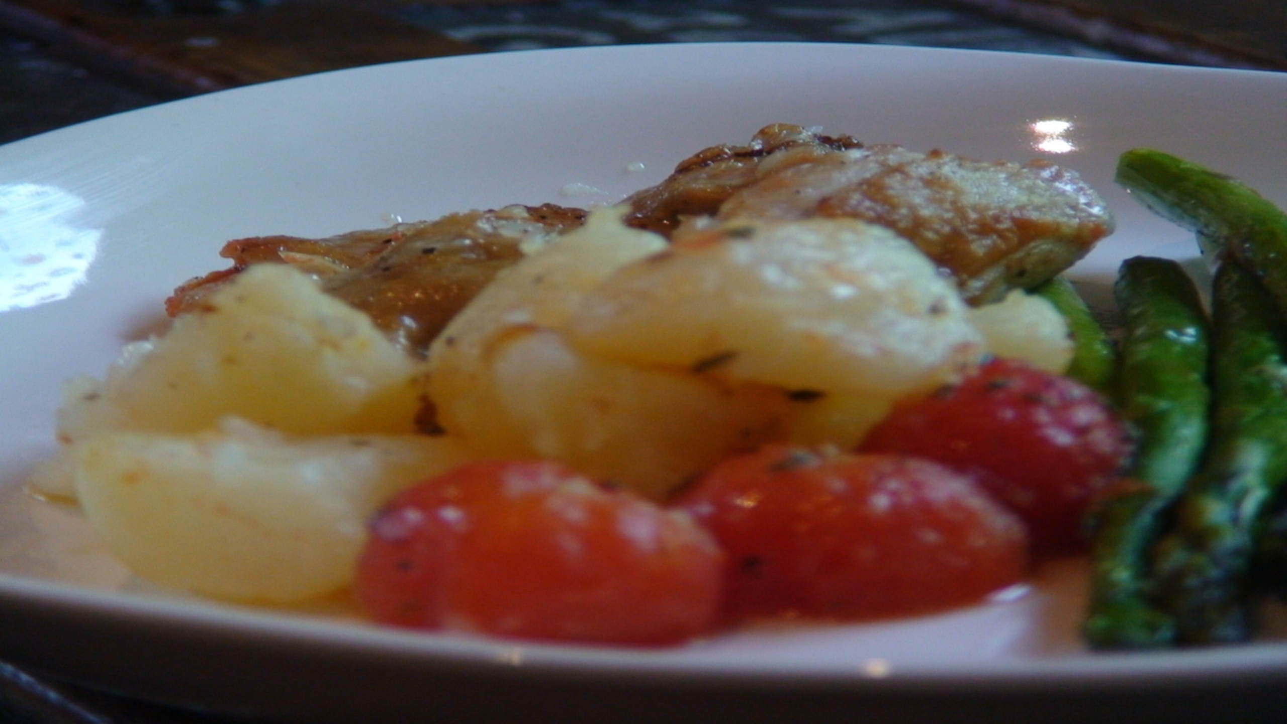 I saw a version of this dish first prepared by Jamie Oliver on one of his TV shows but couldn’t find a recipe for it. This is my version of what I remember only I’ve added the asparagus to give a more balanced dinner presentation.
