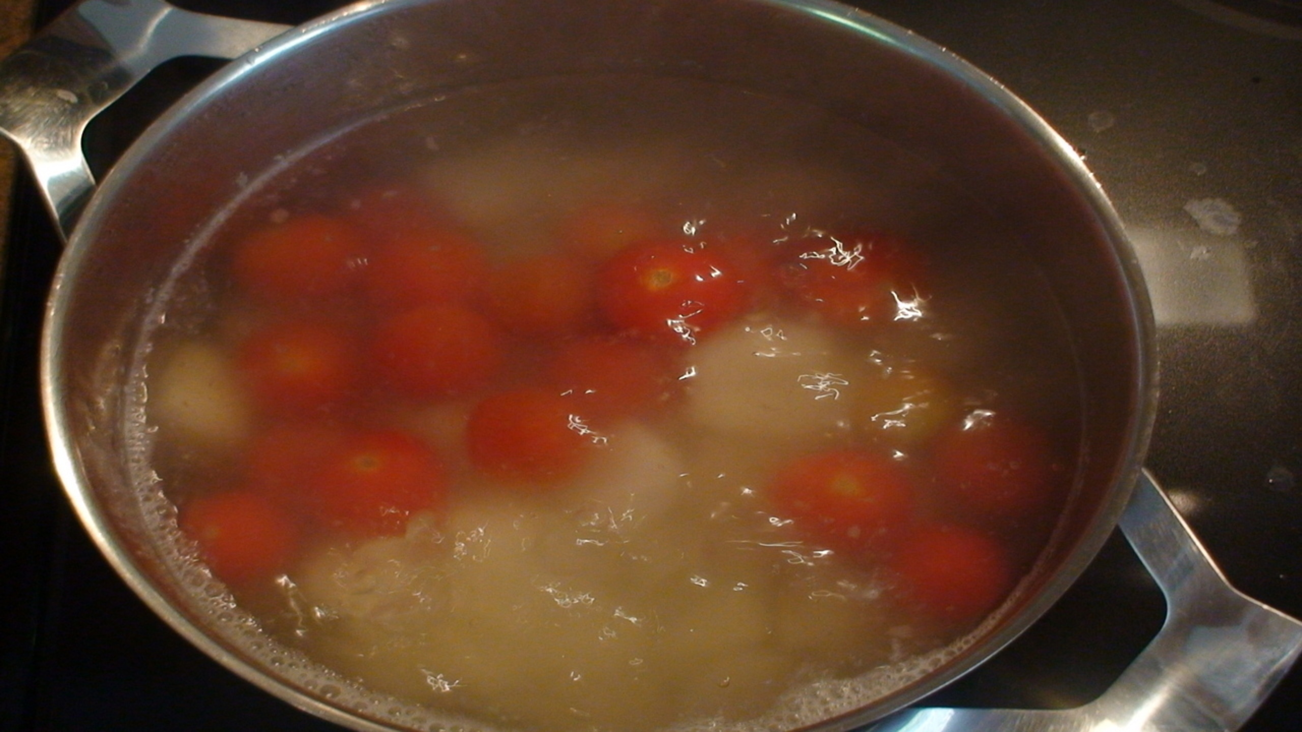 Step 4: Tomatoes into boiling water