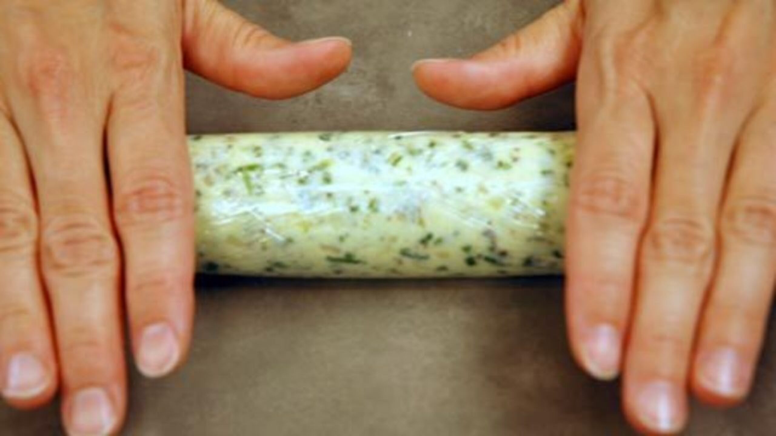To roll the butter, lay a large piece of plastic wrap onto the counter top. Scoop the butter mixture out of the bowl and place onto the plastic wrap. Roughly shape into a log, about 1"- to 1 1/2" -inches round. Wrap the plastic carefully around the log and roll to seal. Twist the plastic on each end in opposite directions, so the butter becomes compressed. Tie each end of the plastic wrap into a knot and place into the refrigerator until completely chilled.