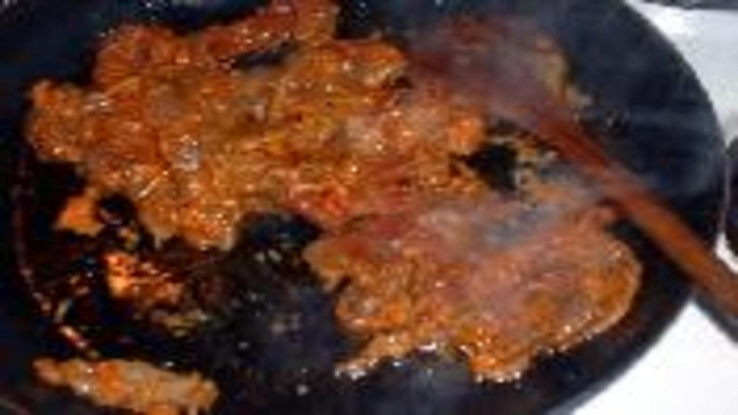 Heat some oil in a pan and add the beef and stir fry until the beef is brown.