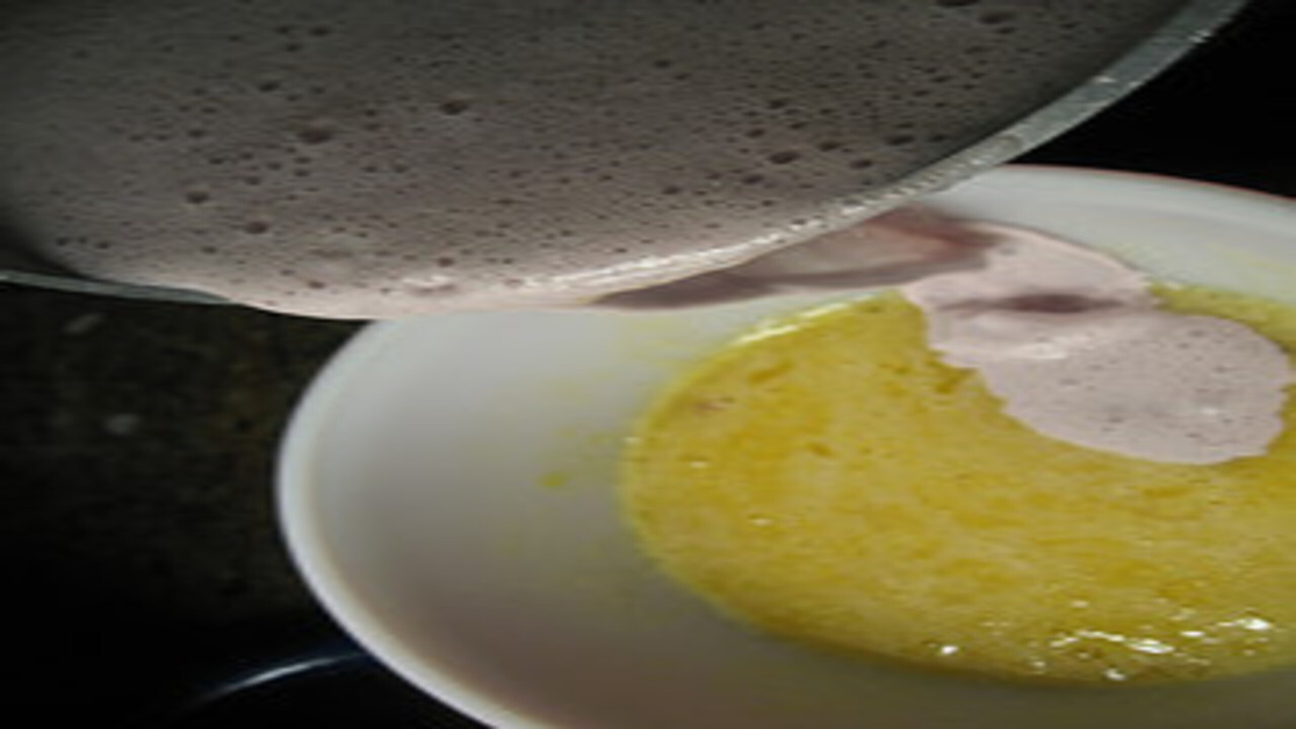 Once the cream mixture has reached the desired temperature, slowly add about half of the mixture to the eggs and sugar while whisking vigorously. This will prevent the eggs from curdling. Once the eggs and cream have been thoroughly integrated, pour back the egg mix into the remaining cream.
