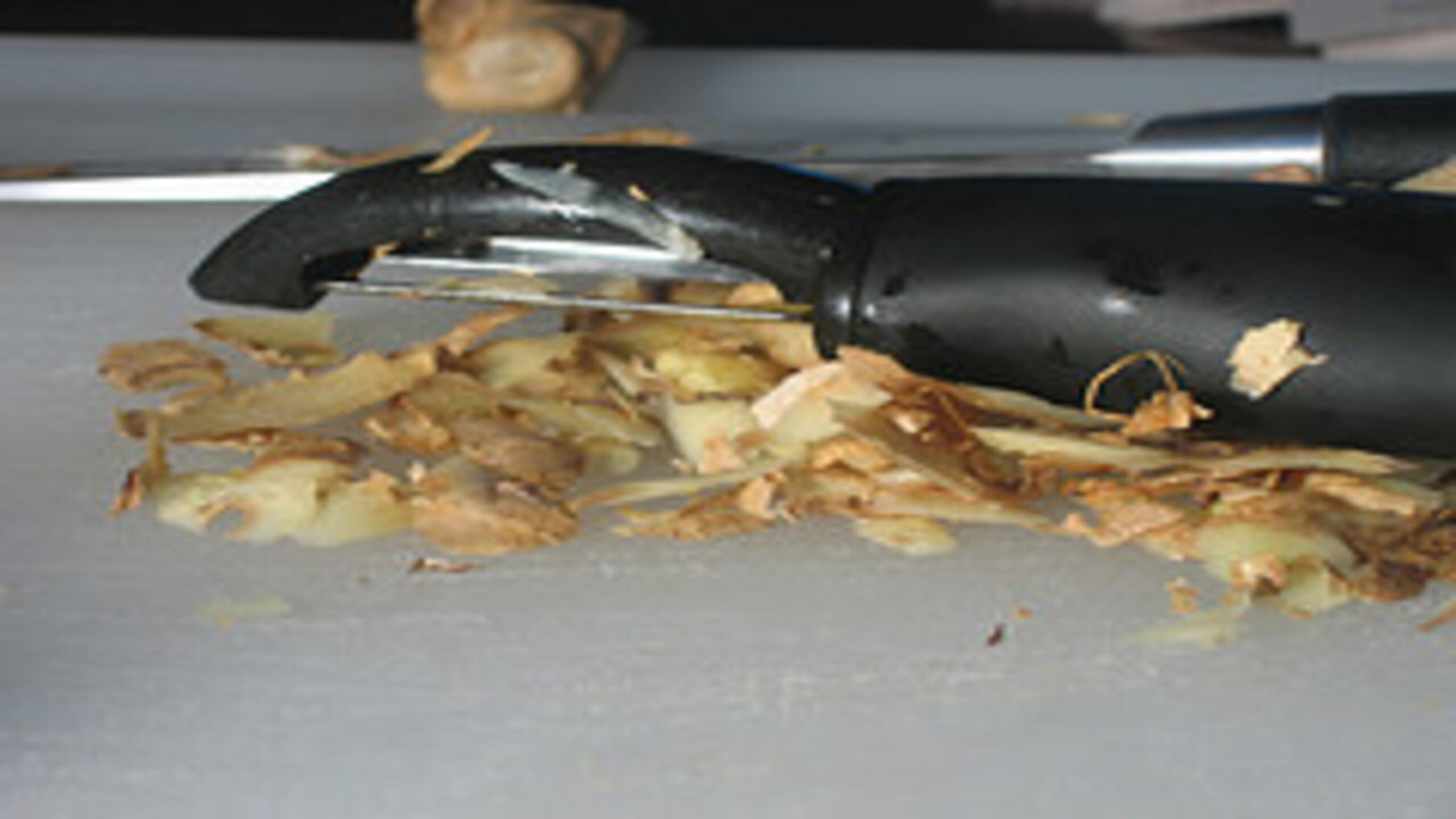 Peel the ginger into a smooth paste. Do not throw away the nubs you are holding.