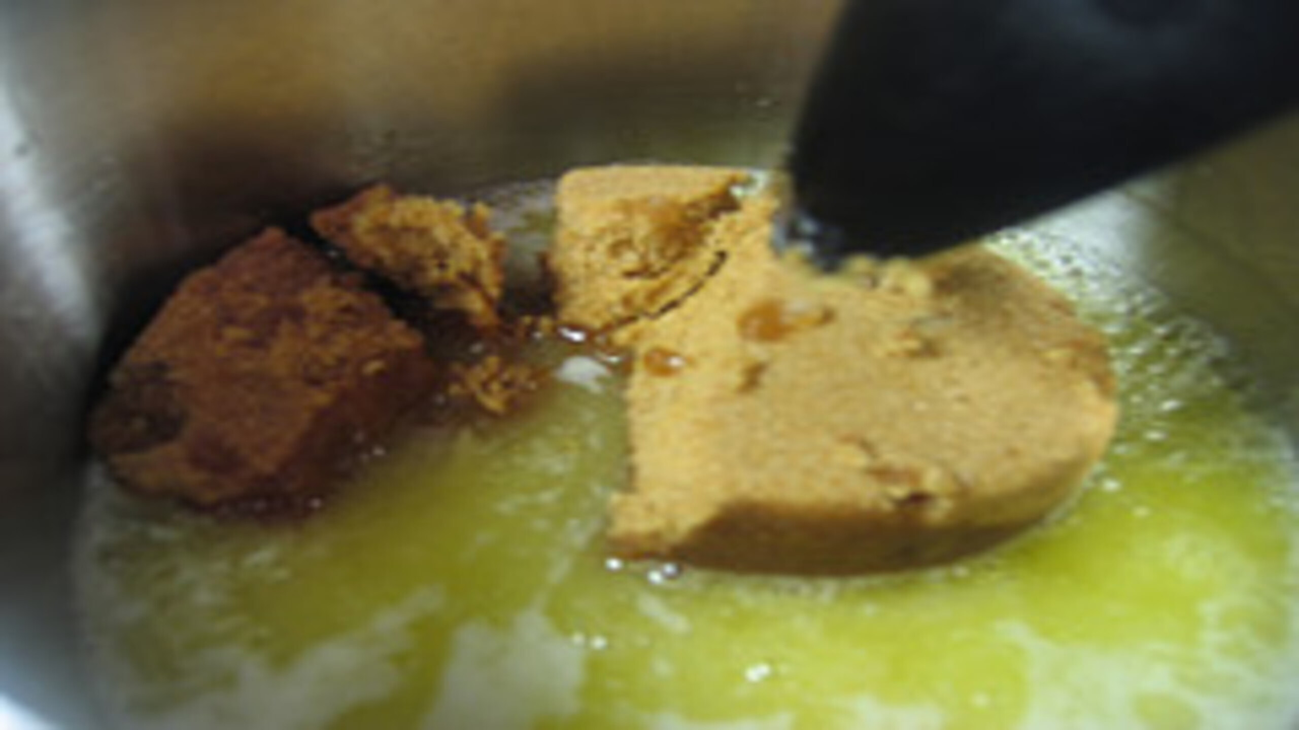 All the fresh ginger, and candied ginger. Whisk frequently to ensure most of the candied ginger begins to dissolve and to ensure that the fresh pieces do not burn on the bottom.