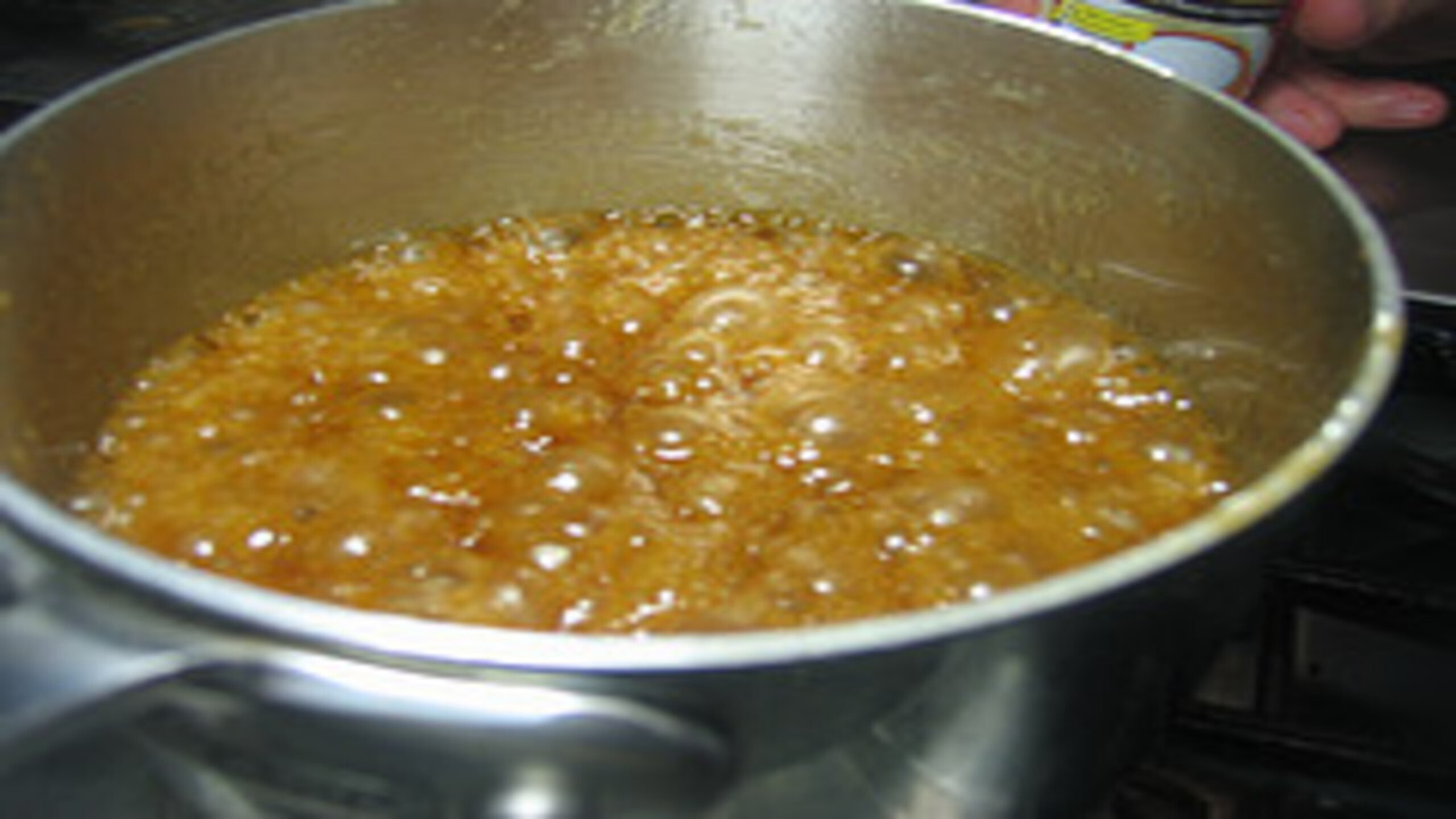 (NOTE: The corn syrup here is working as a molecular agent to keep the sugars from thickening too quickly and making a hard sauce. It will help to keep the sauce smooth while cooking.)