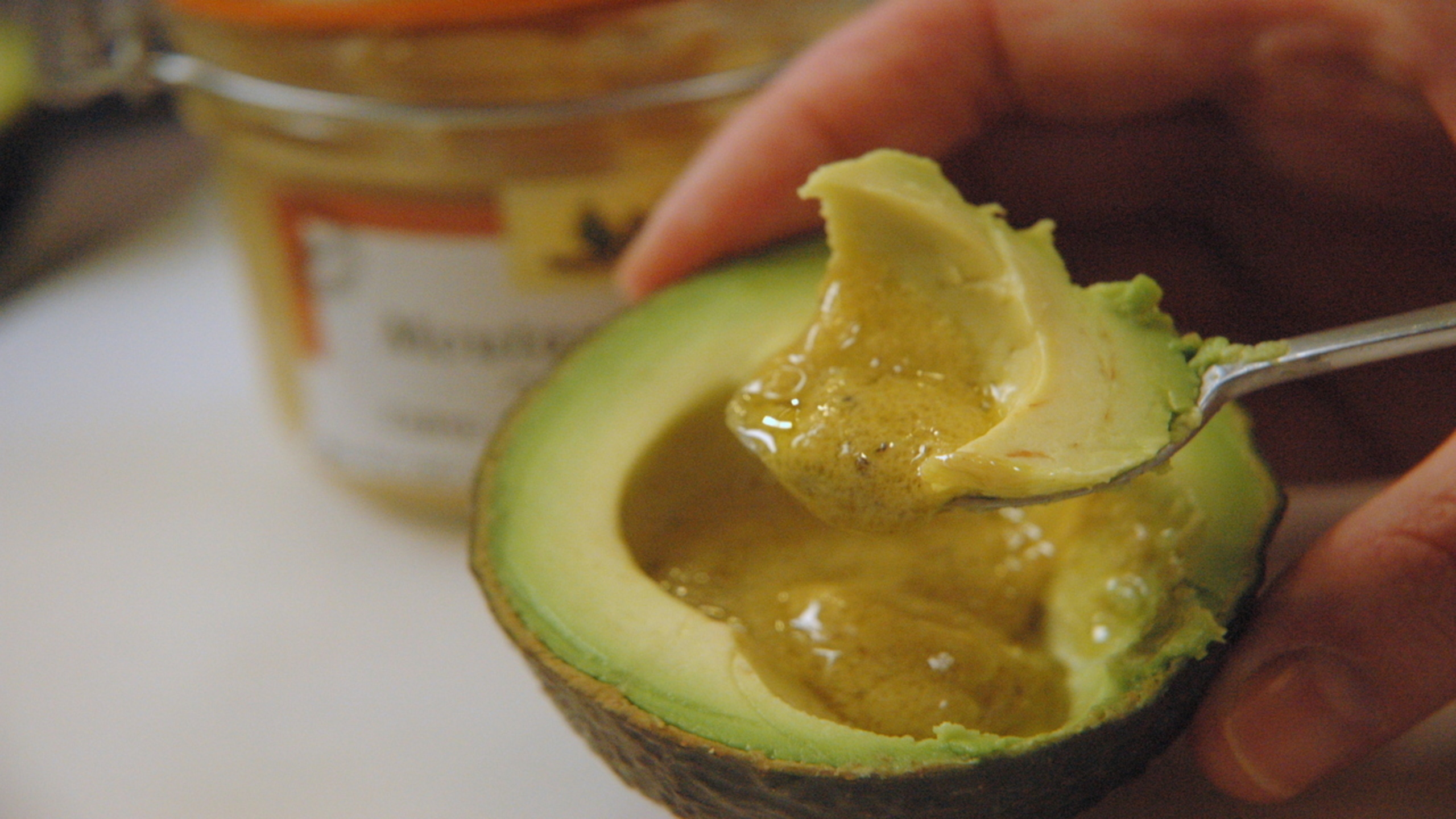 As you eat the avocado, scoop out just a bit of the vinaigrette with each bite.