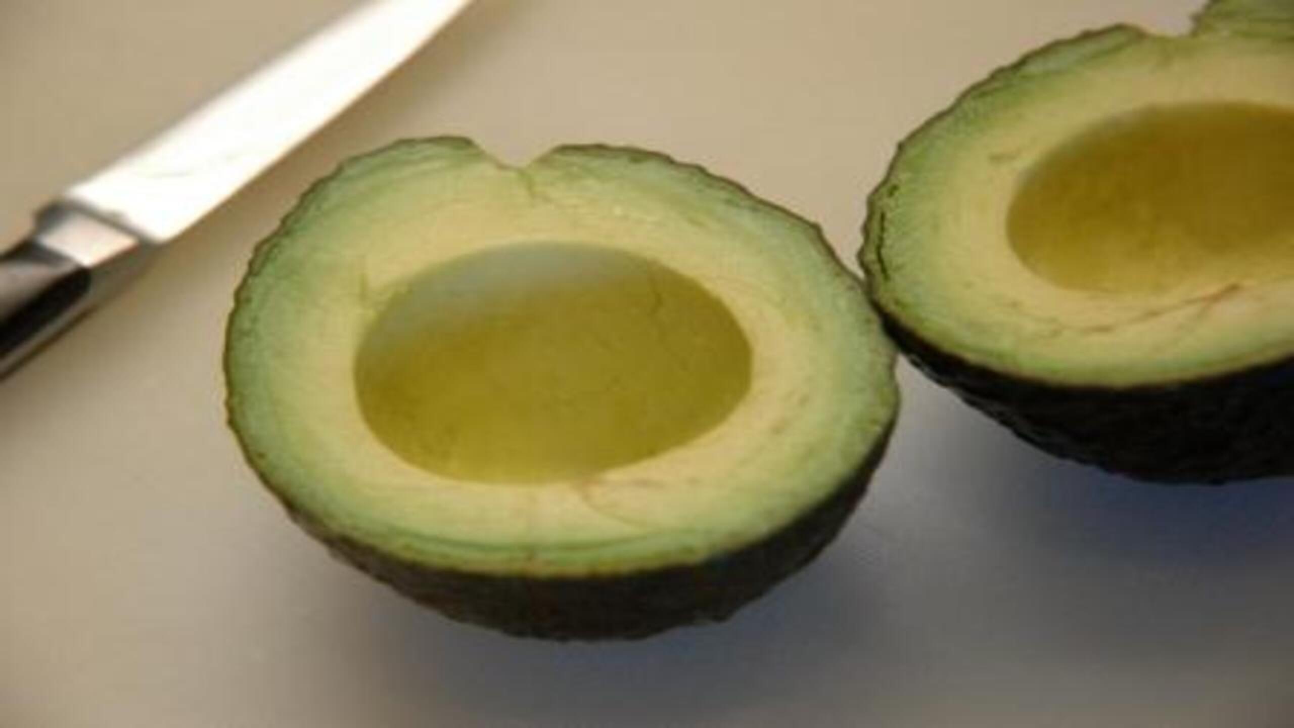 Just before serving, slice the avocado in half and remove the pit or seed.