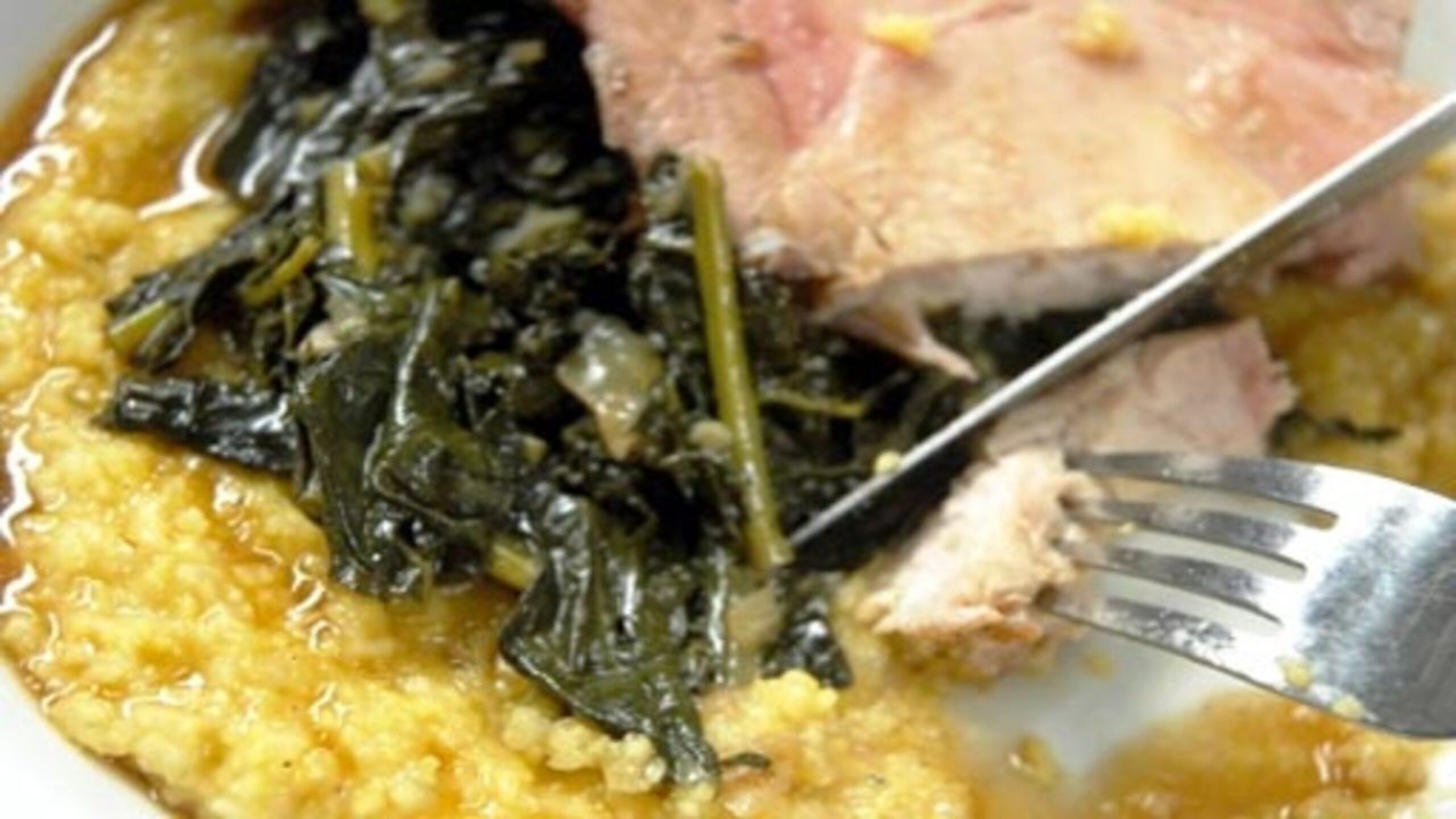 This pork is particularly delicious with soft polenta and braised kale.