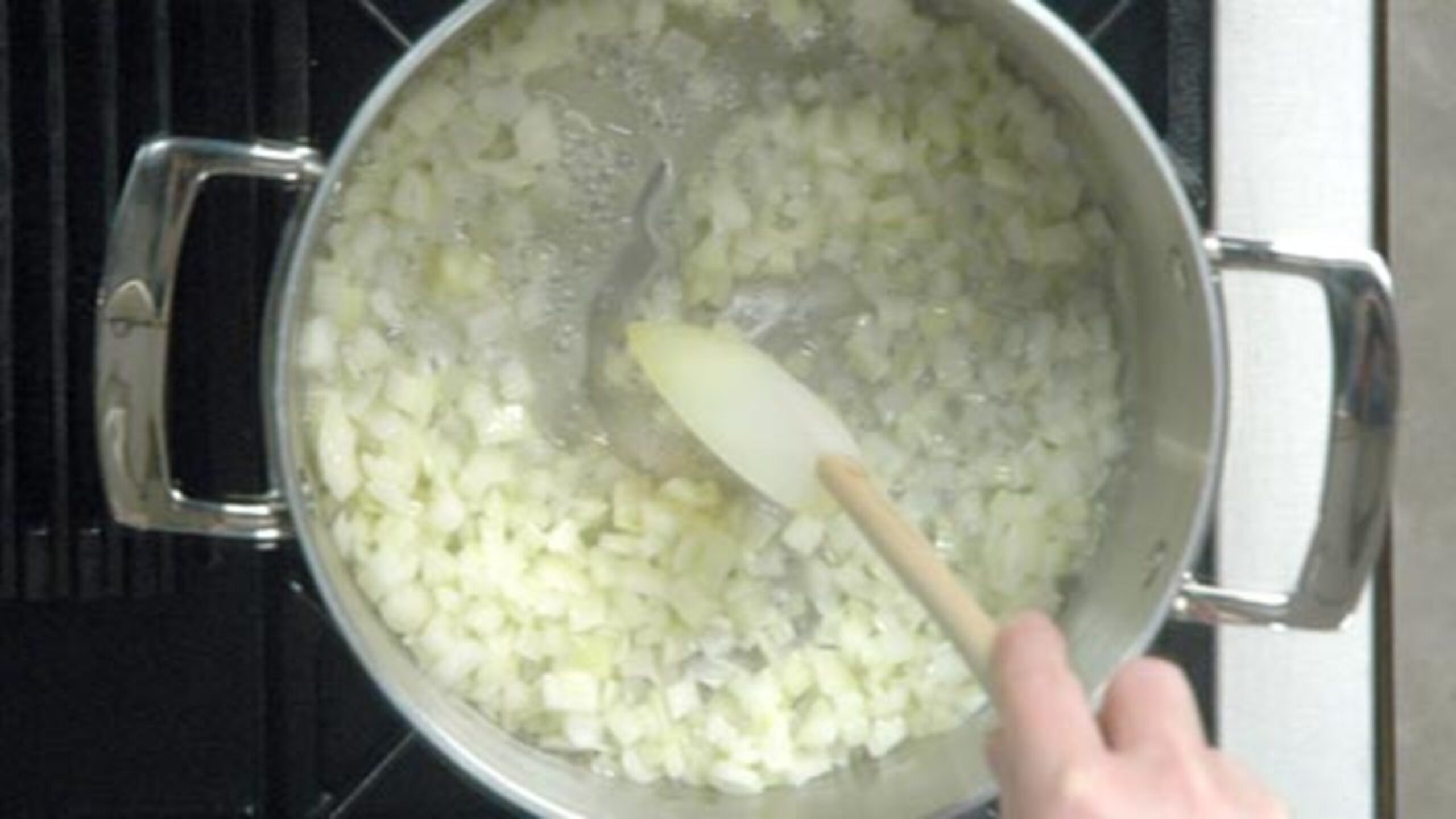 Once the onions are translucent and just starting to take on nice color, add the garlic and sauté for about 30 seconds, until it releases its aroma.