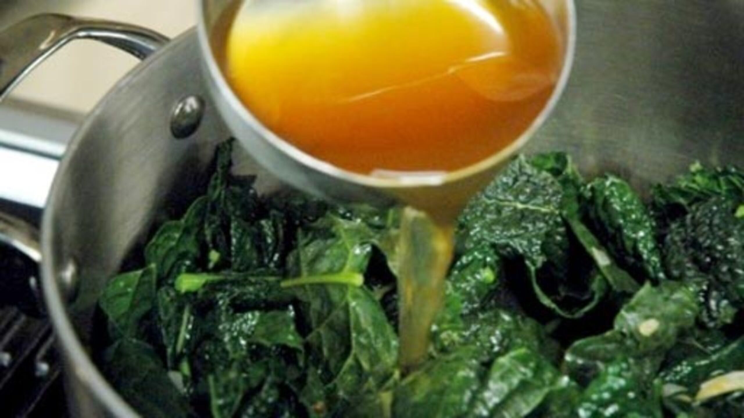 Once the kale has wilted add the stock.