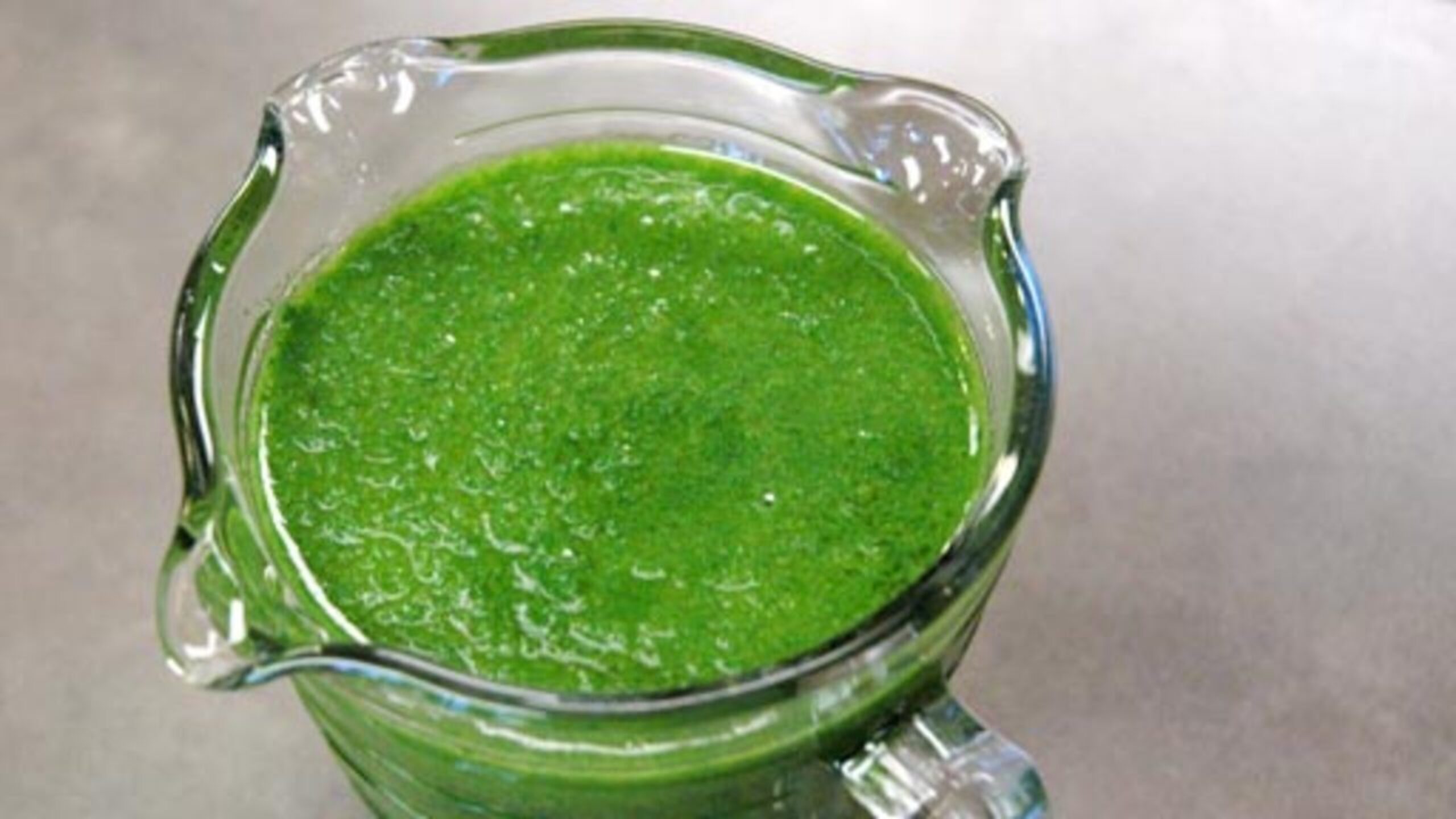 To prepare the oil, place the blanched basil into a blender. Add the grapeseed oil and process until smooth. Add the olive oil and blend again until smooth.