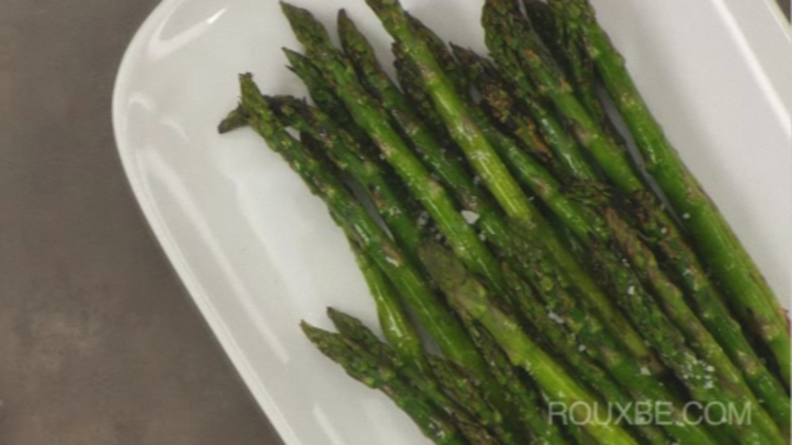 Remove them from the grill onto a serving plate and pour a few tbsp of the vinaigrette over the asparagus and toss with your fingers. They don’t need to be dripping to taste great. Sprinkle with a bit a fleur de sel.