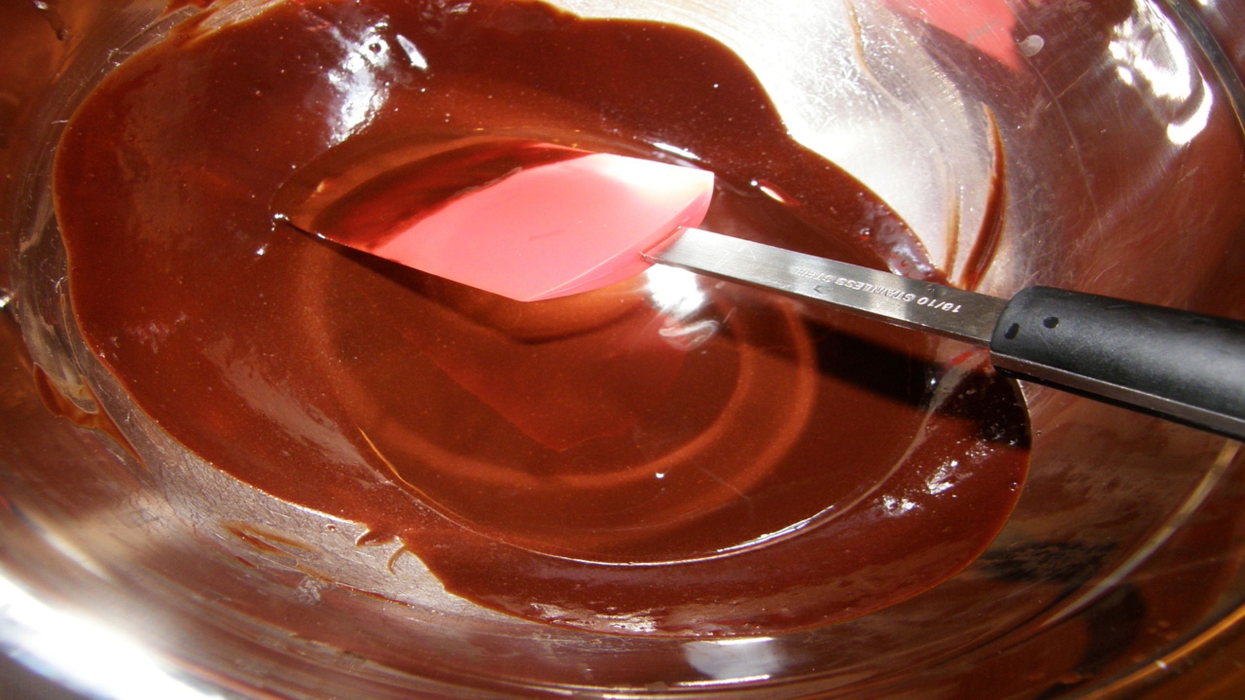 Melt the butter and chocolate over a double boiler until they are smooth, then off the heat whisk in the vanilla, sugar-flour mixture and the eggs one at a time.