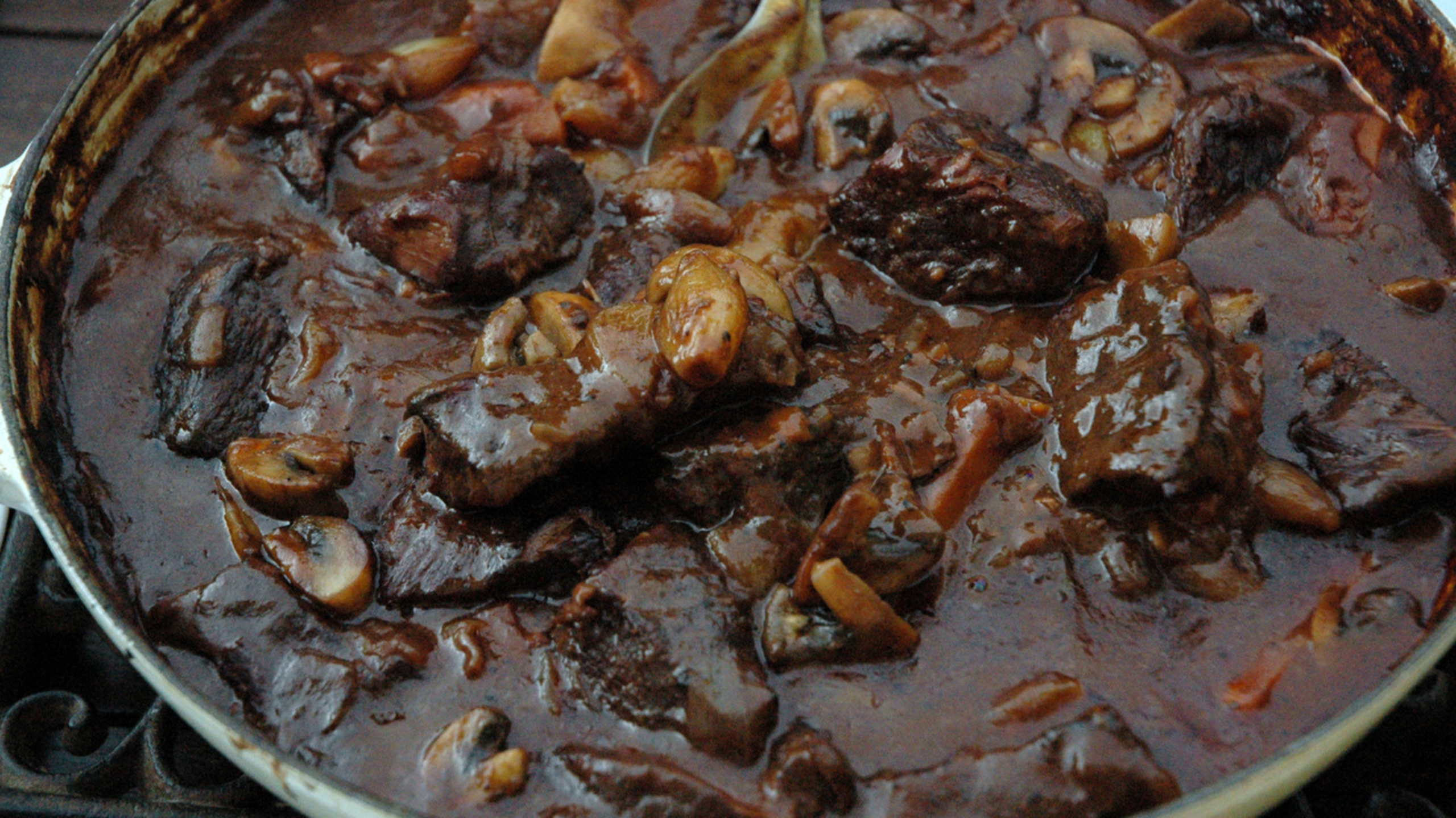 If chilling overnight, for food safety reasons, it’s best to cool the stew quickly. To do this, place the pot over an ice bath and gently stir from time to time to bring the temperature down. Once cool, cover and transfer to the refrigerator overnight. To prepare the dish for serving, first remove any hardened excess fat from the surface of the stew.