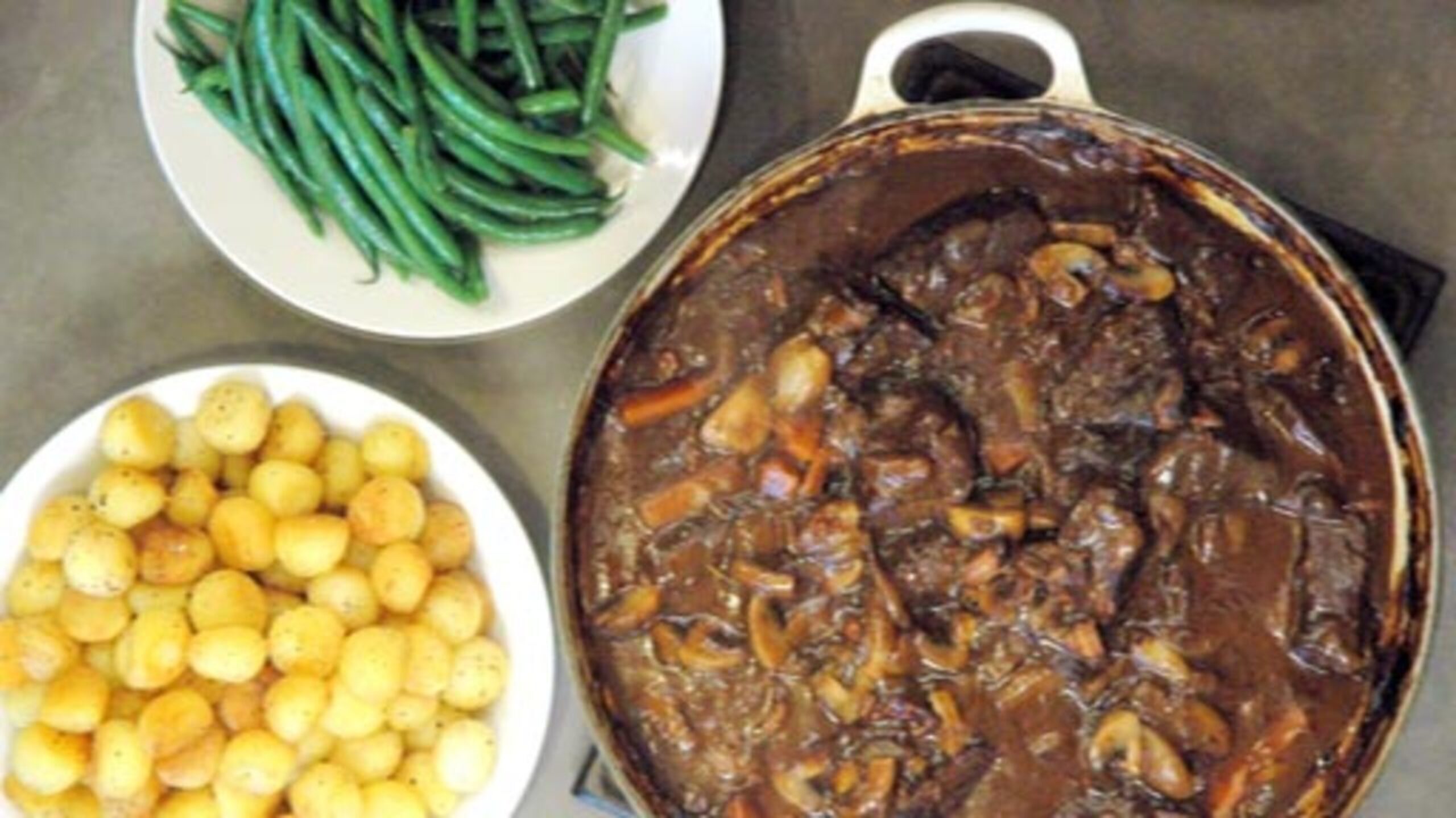 This beef bourguignon is spectacular served with steamed green beans or Sauteed Green Beans and Pommes Parisienne.
