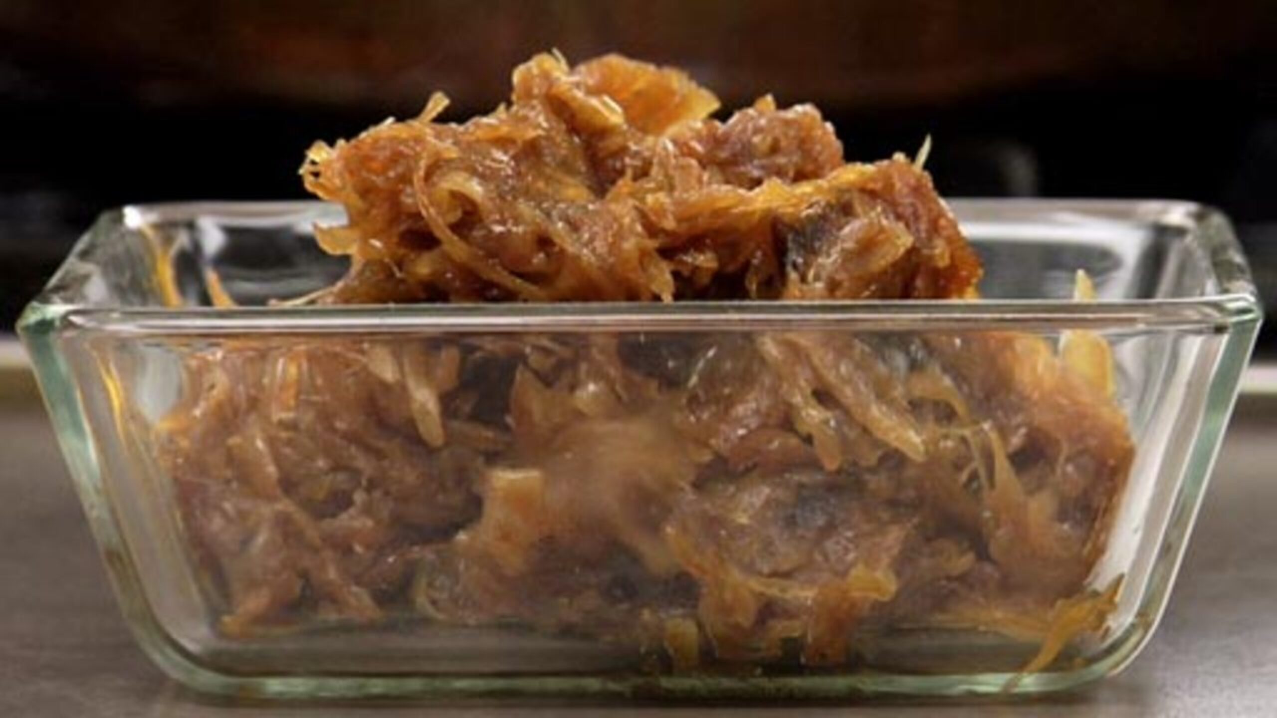 If you don’t have any on hand, follow the recipe for Caramelized Onions. This recipe makes quite a bit, but the leftovers are great on pizza and for things like the Alsatian Tart or the Tapas Style Pork Tenderloin.
