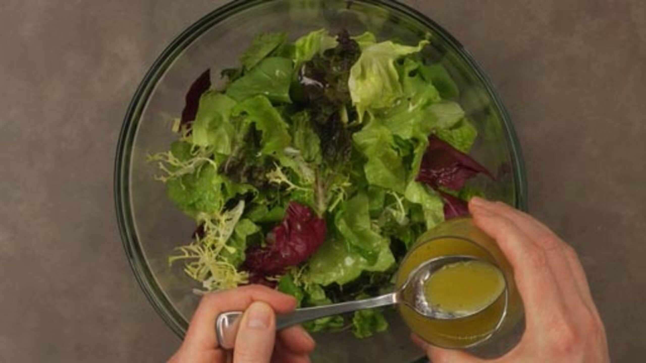 Wash and spin dry the greens. Just before serving the tarts, toss the salad with some of the vinaigrette, to taste. Any leftover vinaigrette can be stored in the refrigerator for a few days.