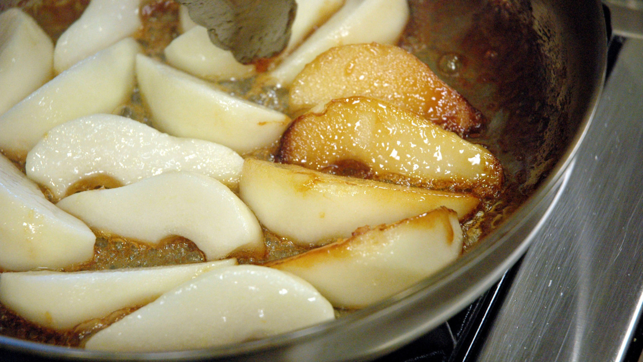 Step 4: Cooking and Flipping the Pears