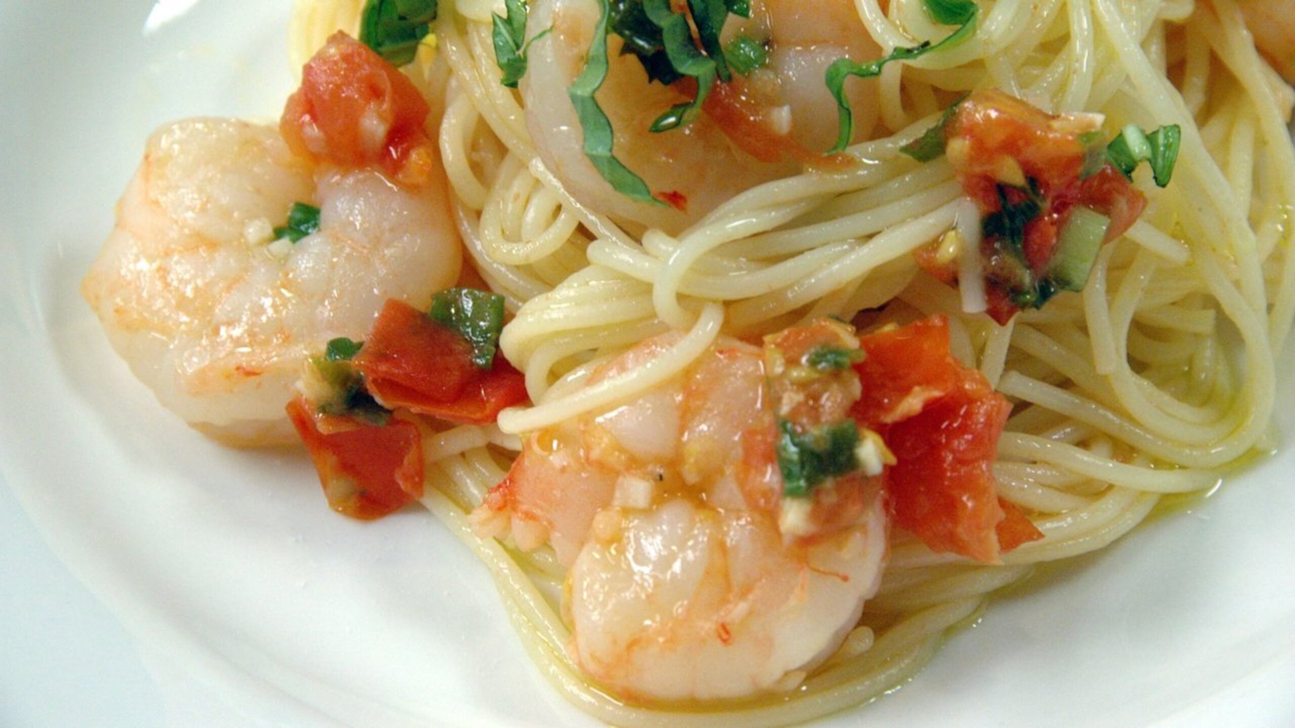 Note: This recipe calls for 7 ounces of dried pasta but we felt it was a bit too much for an appetizer and the amount of sauce; therefore, we recommend using 5 or 6 ounces of dried pasta. Angel hair pasta is also known as cappellini or spaghettini.