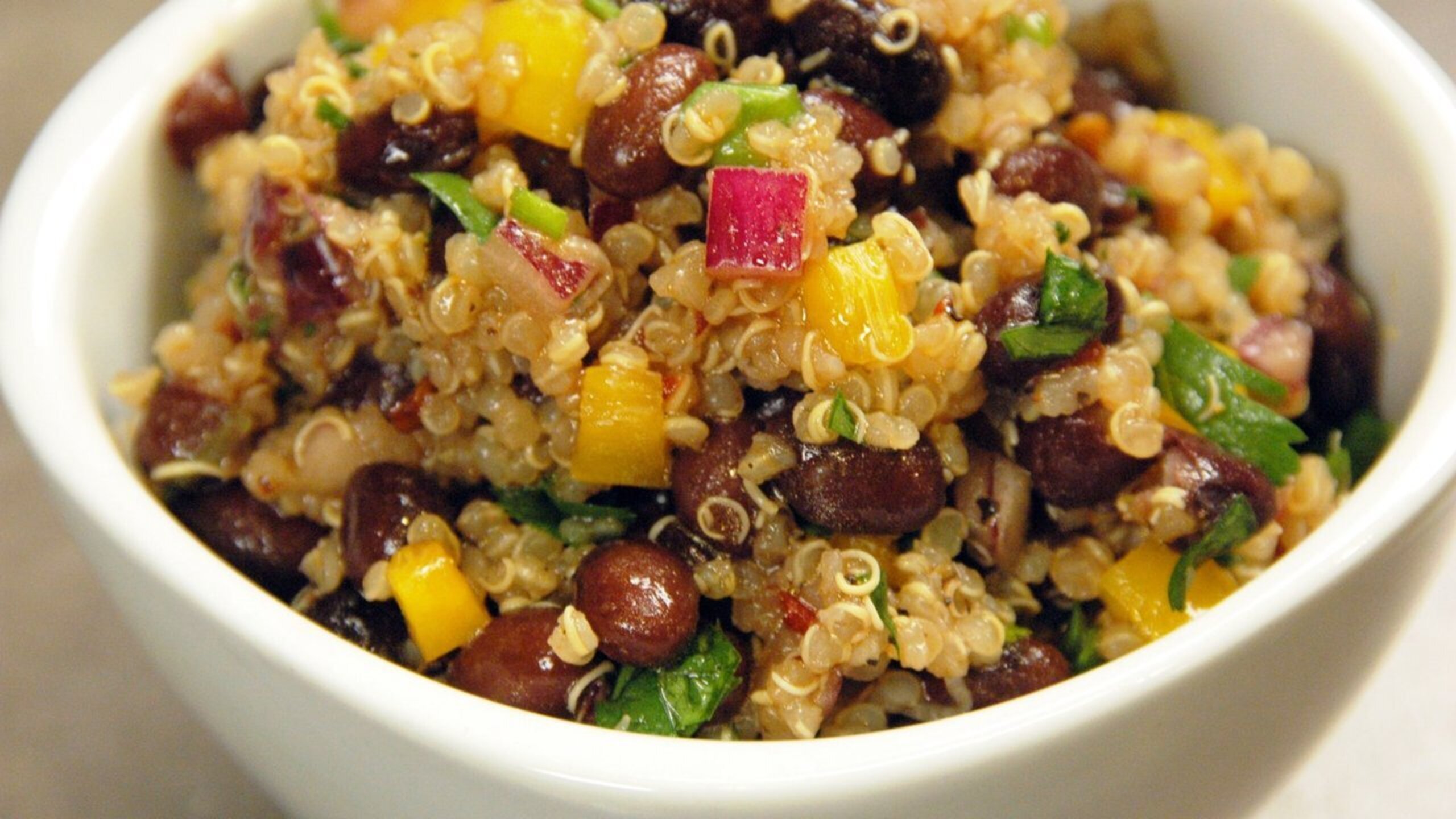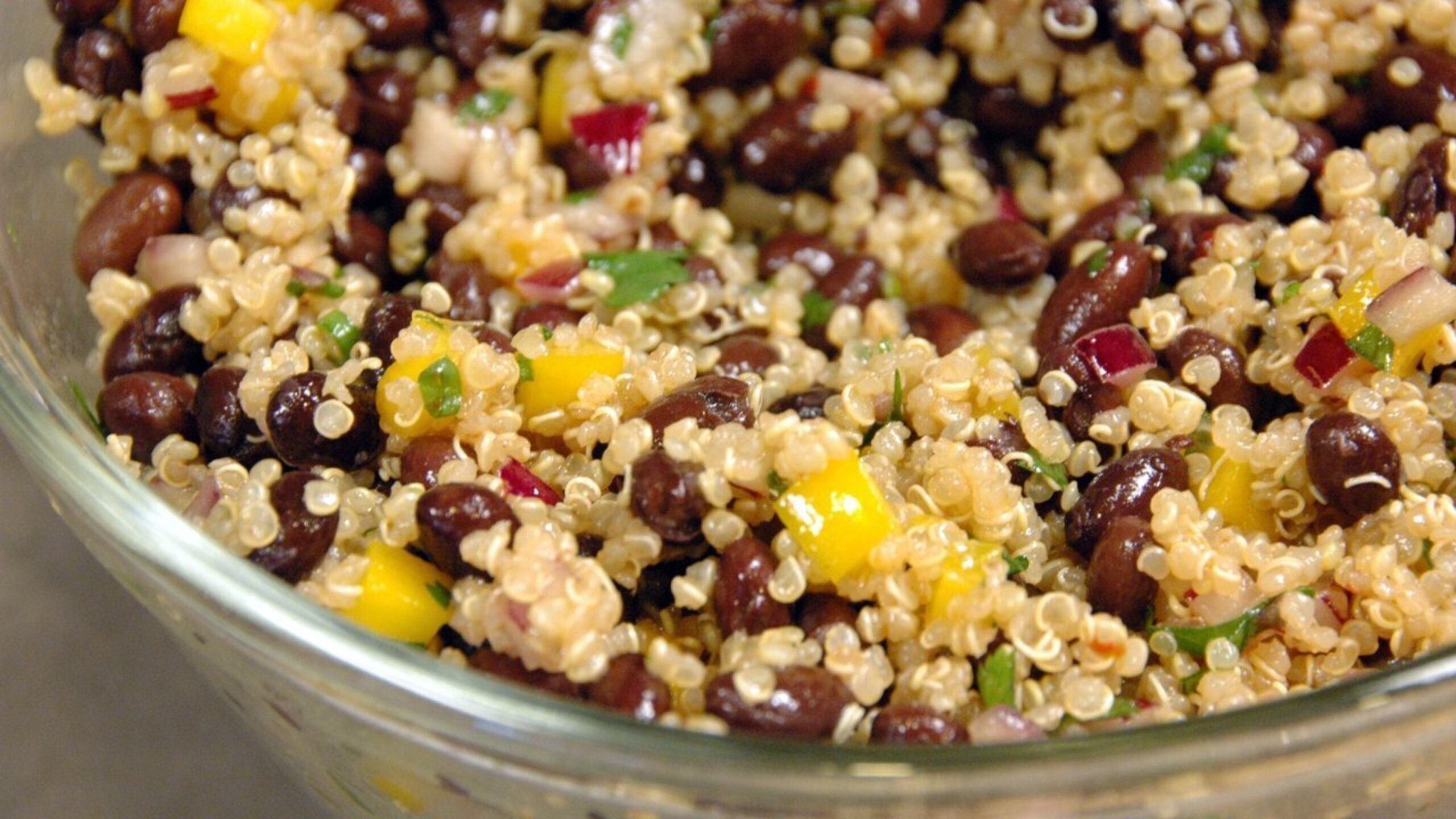 Next, add the black beans, quinoa and all of your mise en place. Gently fold everything together and adjust the seasonings to your liking (i.e., more lime juice, soy sauce, chipotle pepper, avocado, etc.).