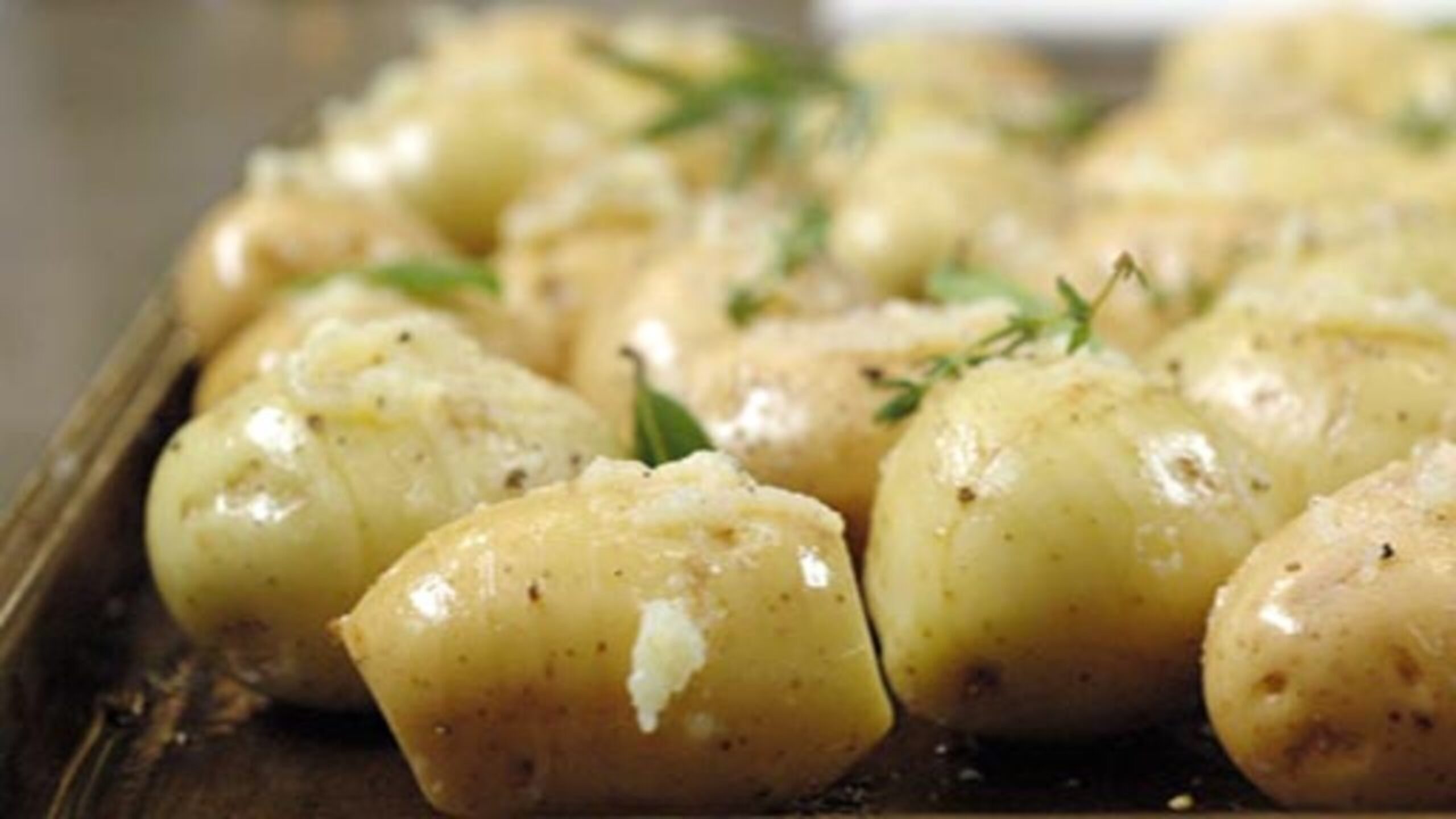 To serve the potatoes, drizzle with any melted fat from the baking tray or with more extra-virgin olive oil.
