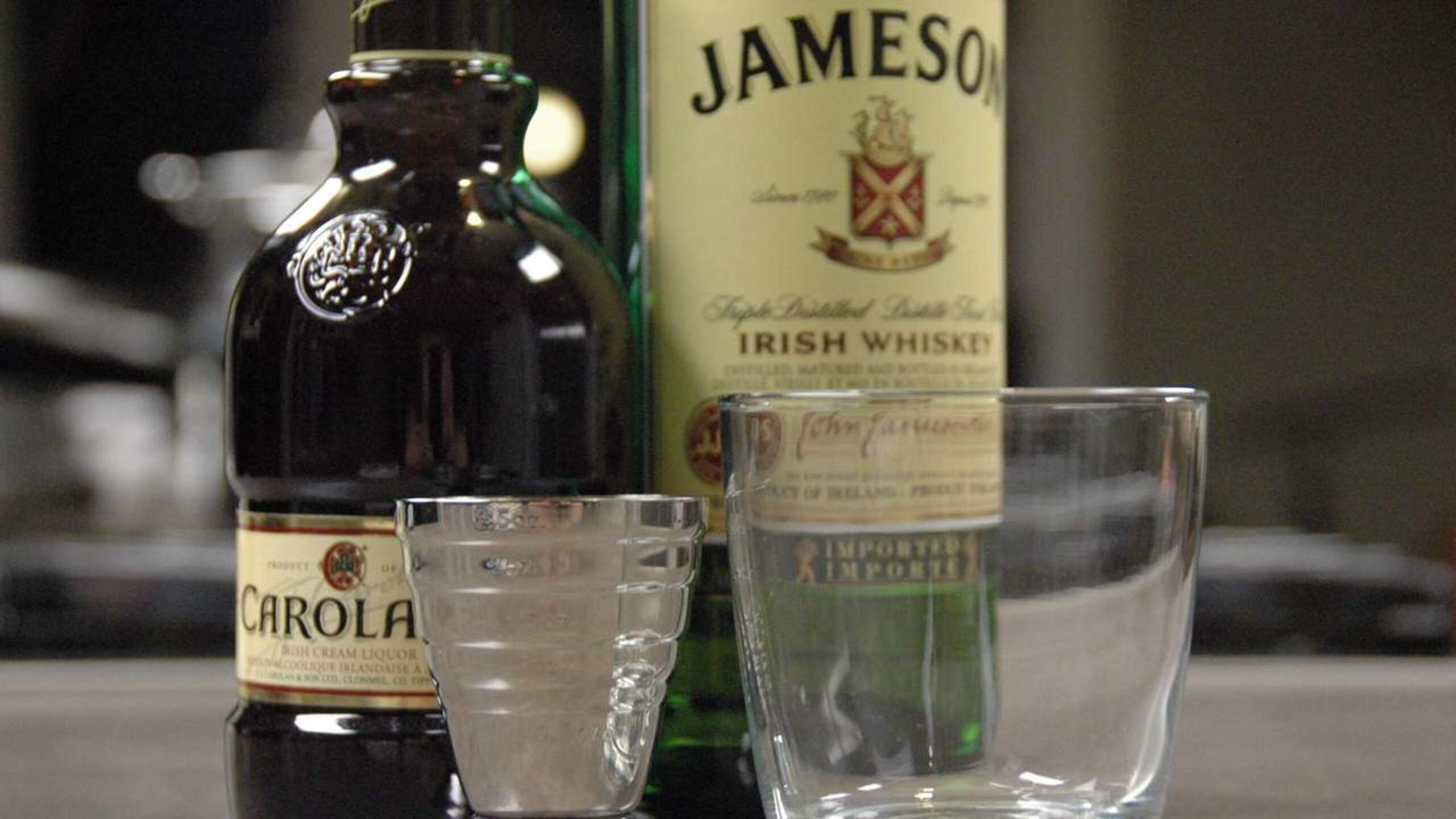 Fill your glass with some ice. Pour the Jamesons Irish Whiskey over the ice, followed by a shot of the Baileys Irish Whiskey. Stir and serve immediately.