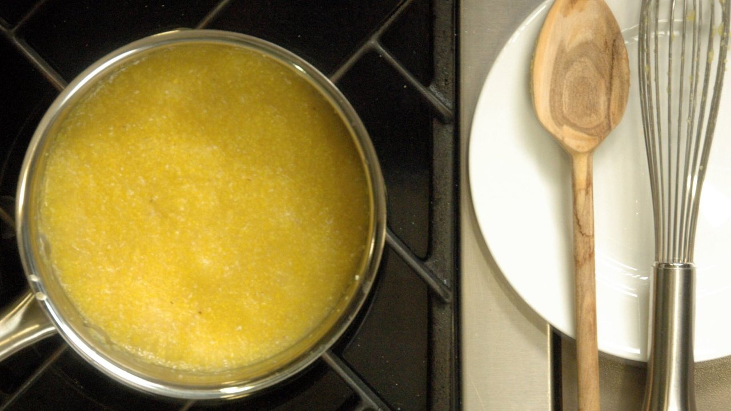 Once the polenta is done, taste it for seasoning and stir in the olive oil, if desired.