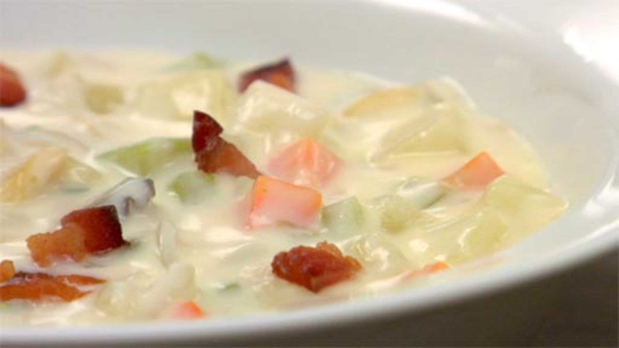 Note: You can cook the bacon in the same pot that you make the soup; however, it tends to discolor the white color of the final chowder and does not look as attractive. Depends how picky you want to be!