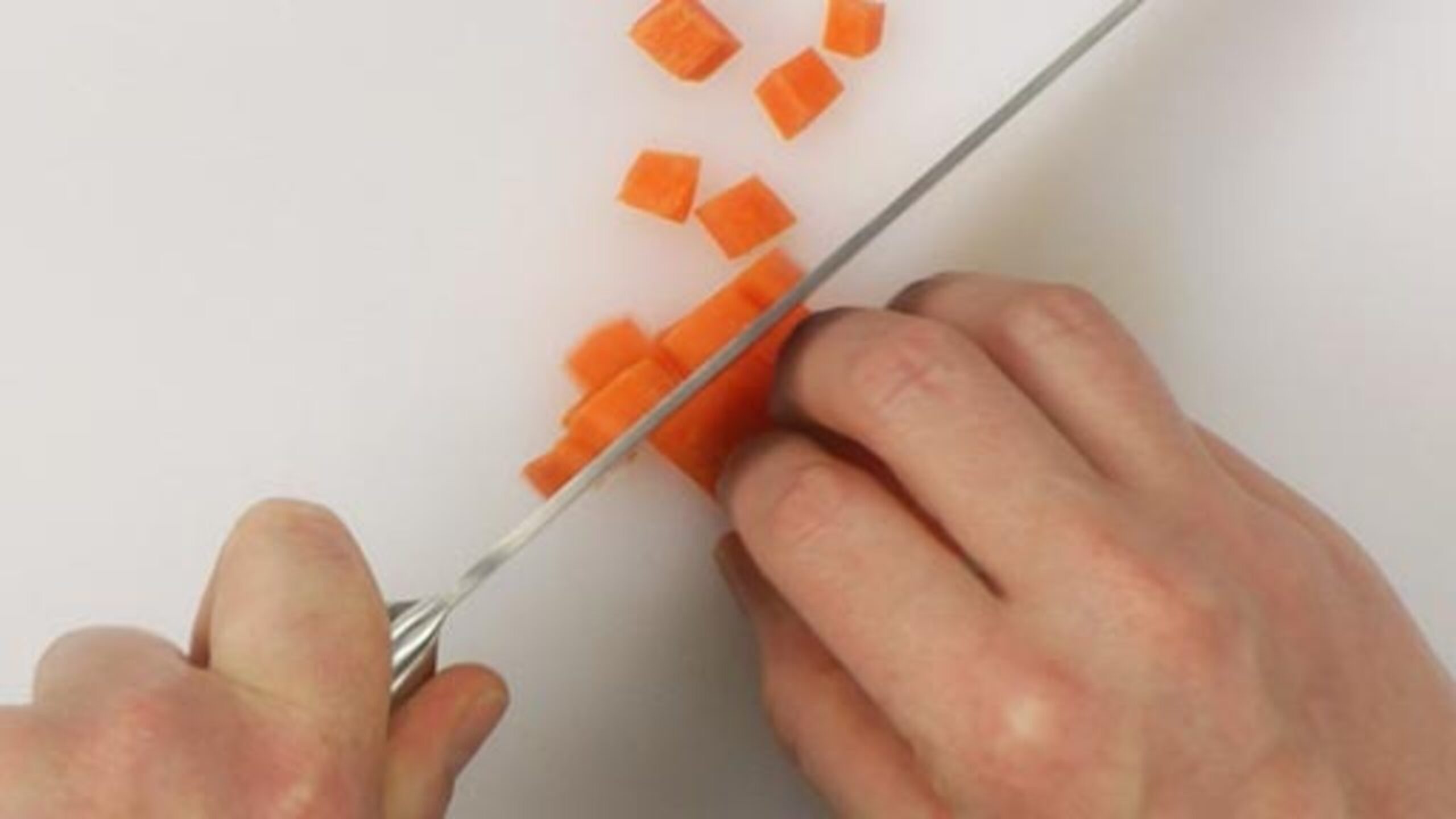 To prepare your mise en place, first cut the bacon into lardons. Peel and dice the onion, celery and carrots into about 1/4" -inch pieces. For the potatoes, peel and dice into approximately 1/2" -inch cubes. Cover the potatoes with cold water. Set everything aside.