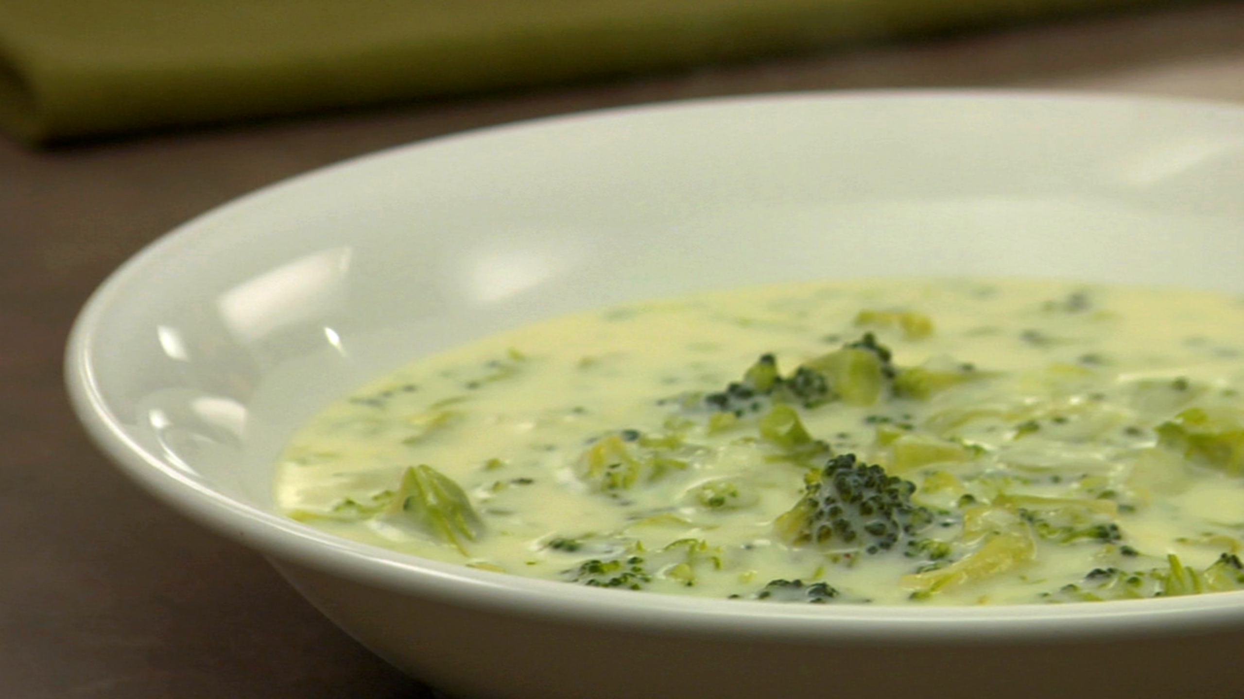 Once the stems are nearly tender, add the florets along with a good pinch of salt. Let the soup gently simmer until the florets are tender and cooked all the way through. Once the florets are tender, add salt and pepper to taste.
