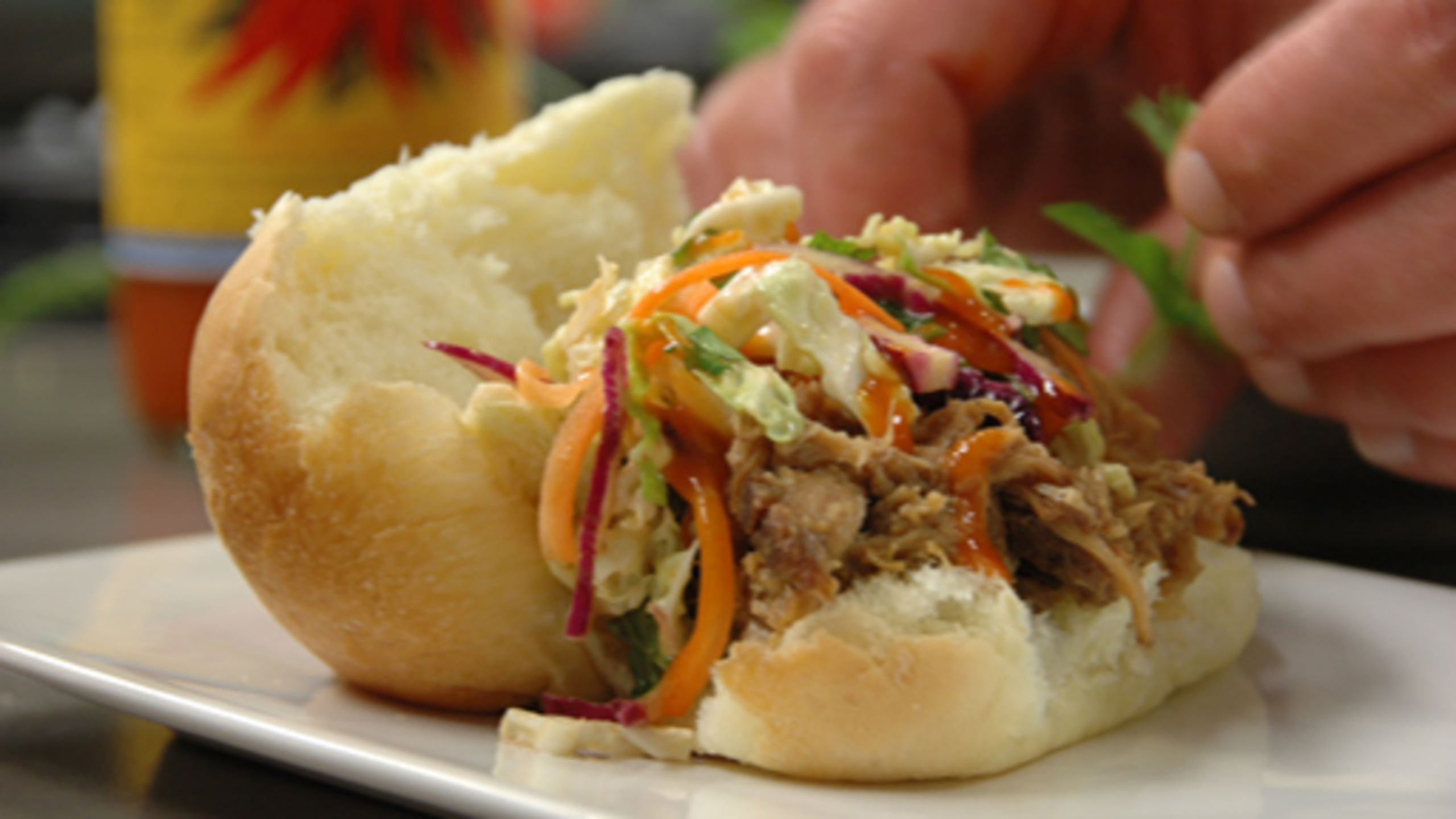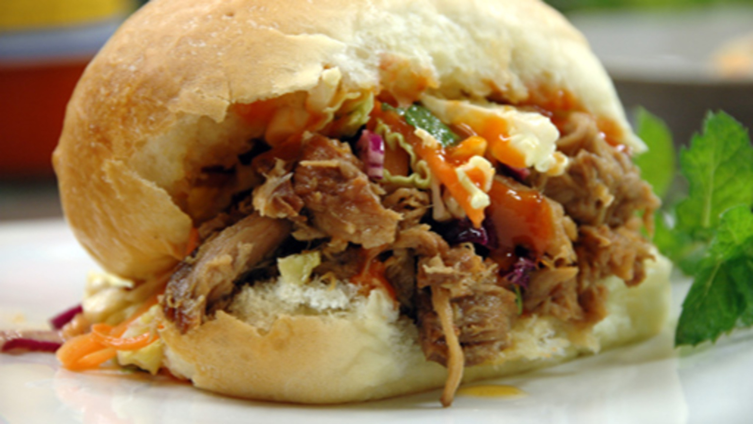 To assemble the buns, place a generous amount of pork onto each bun and then top with a good amount of coleslaw. Garnish with extra Sriracha sauce, if desired.