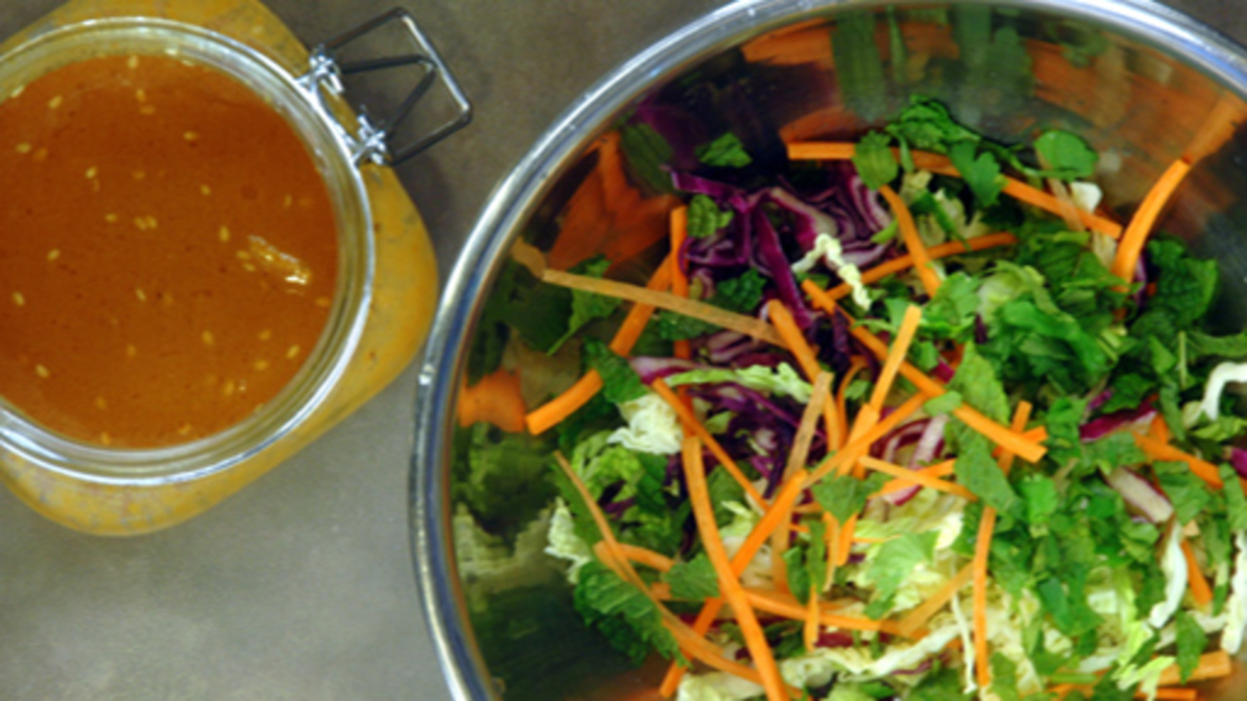 In the meantime, you can prepare the dressing and even cut the cabbage and carrots for the coleslaw (see Step 4).