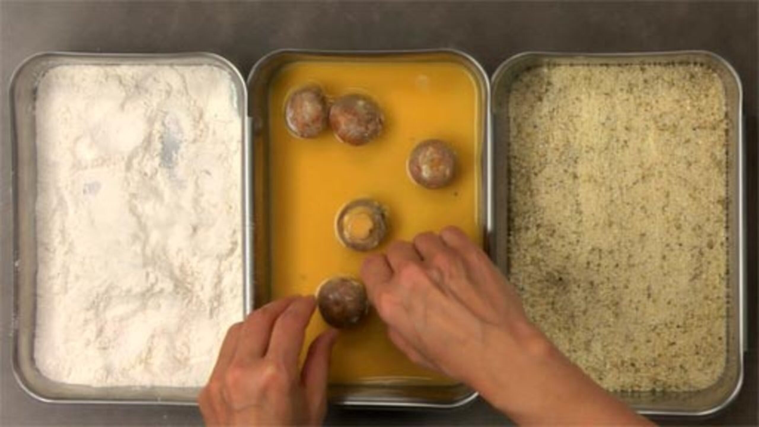 Before breading the mushrooms:
