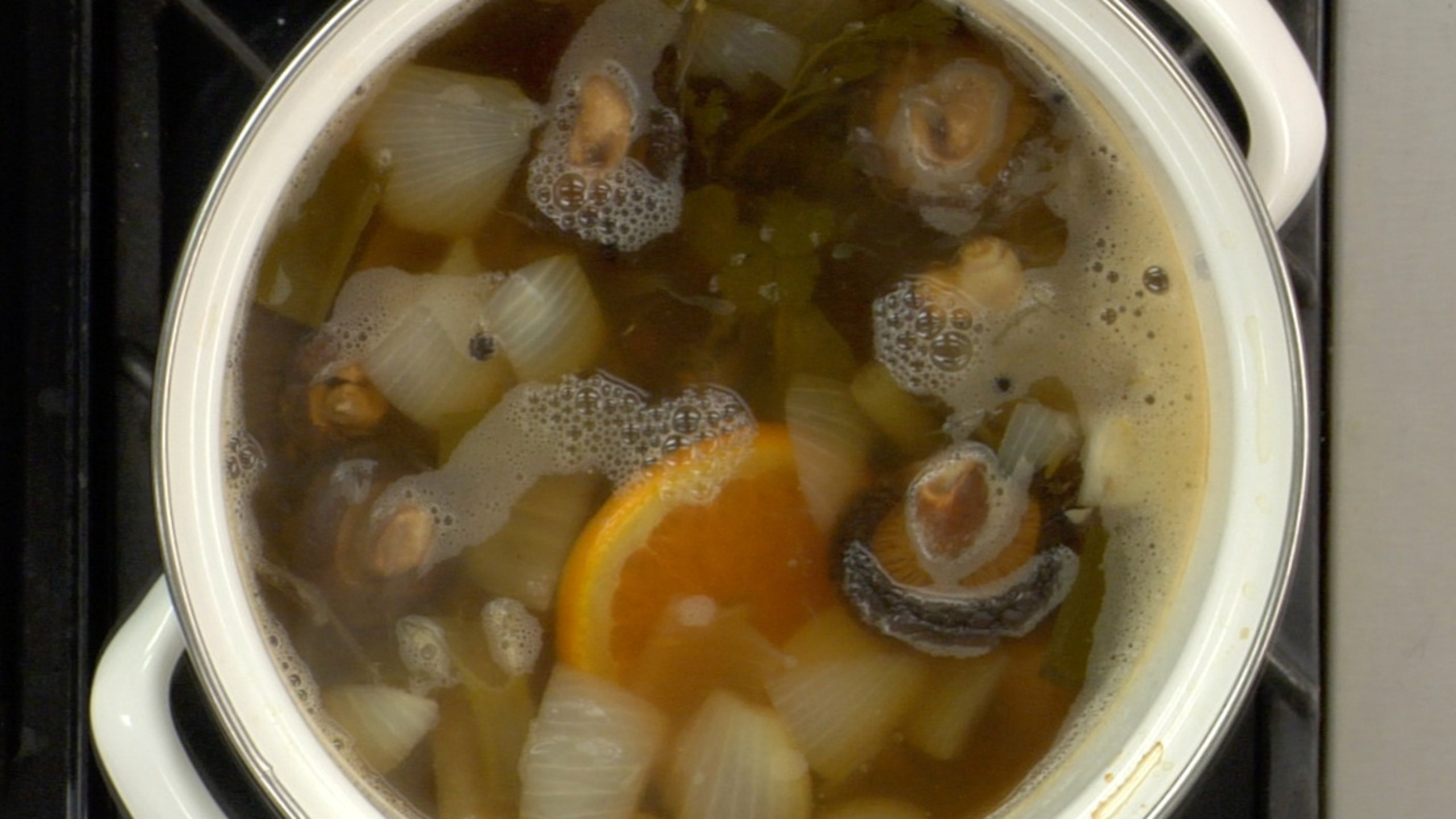 Note: If the stock is boiled, it will develop harsh flavors from the pungent ingredients.