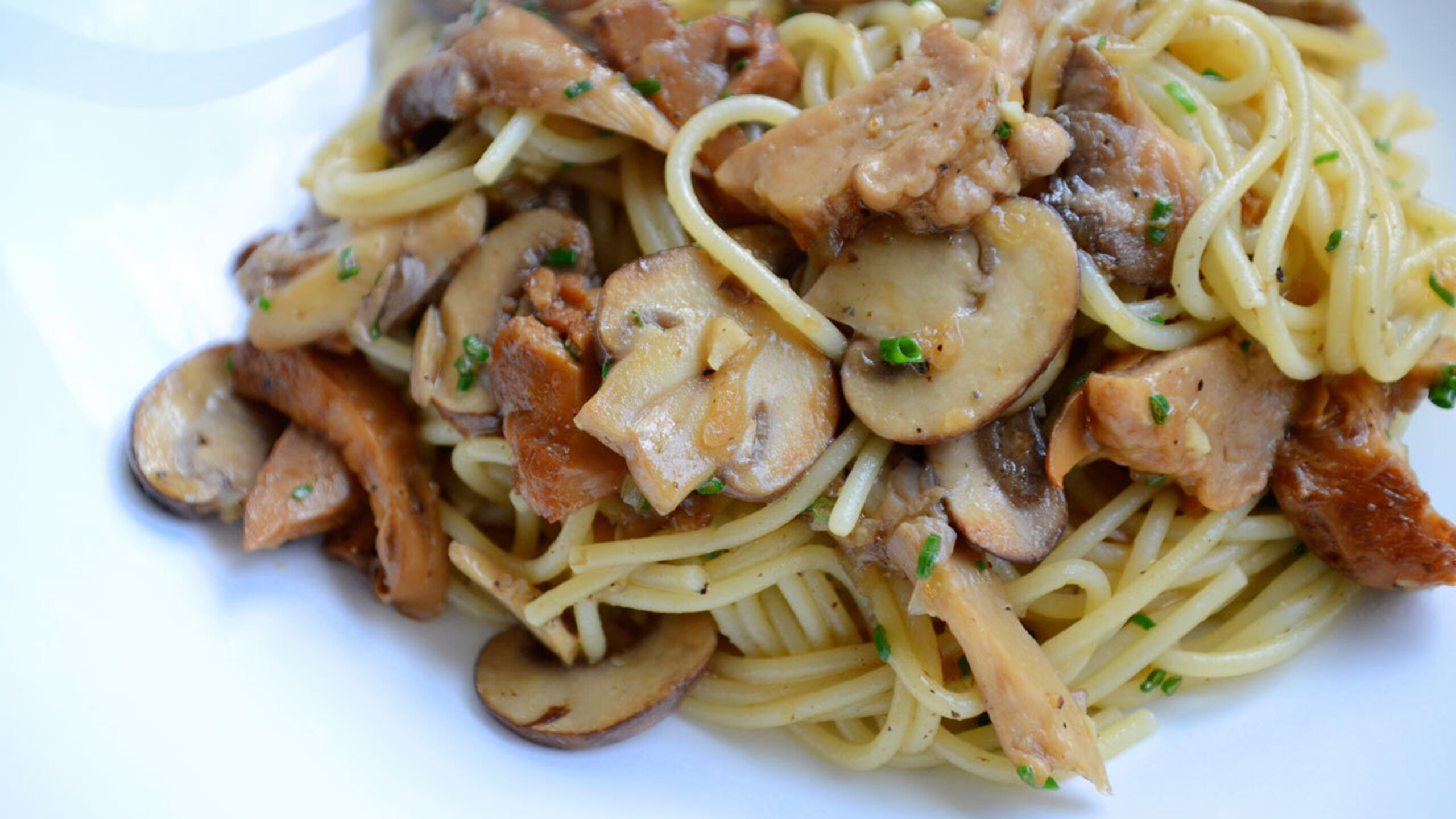 To serve the pasta, add the chives and truffle oil to the mushrooms and taste for seasoning. Add, more salt, pepper and/or truffle oil, if needed.